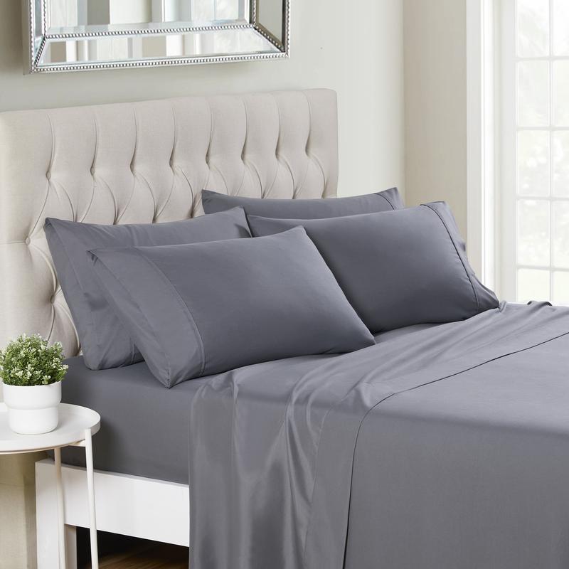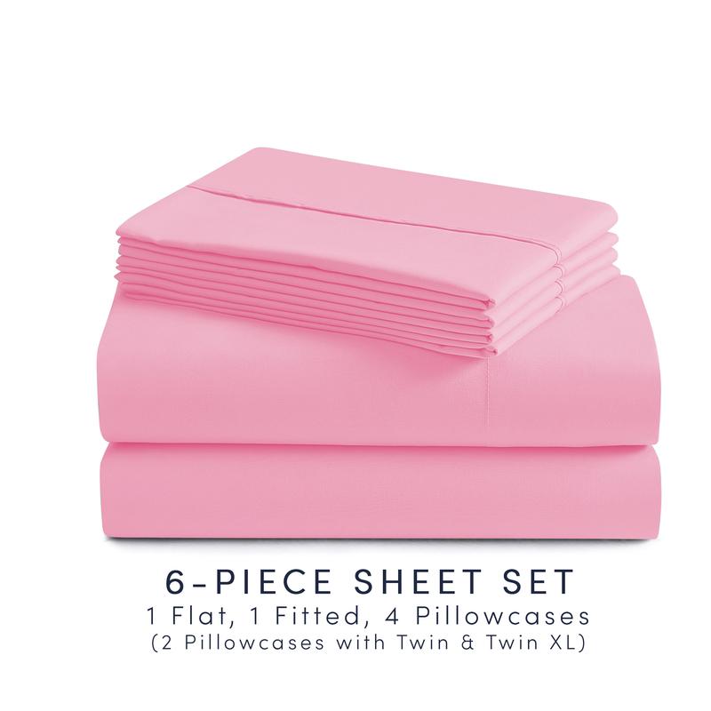 ·6-piece set includes: 4 pillowcases, 1 fitted sheet, and 1 flat sheet (2 pillowcases with Twin and Twin XL options)