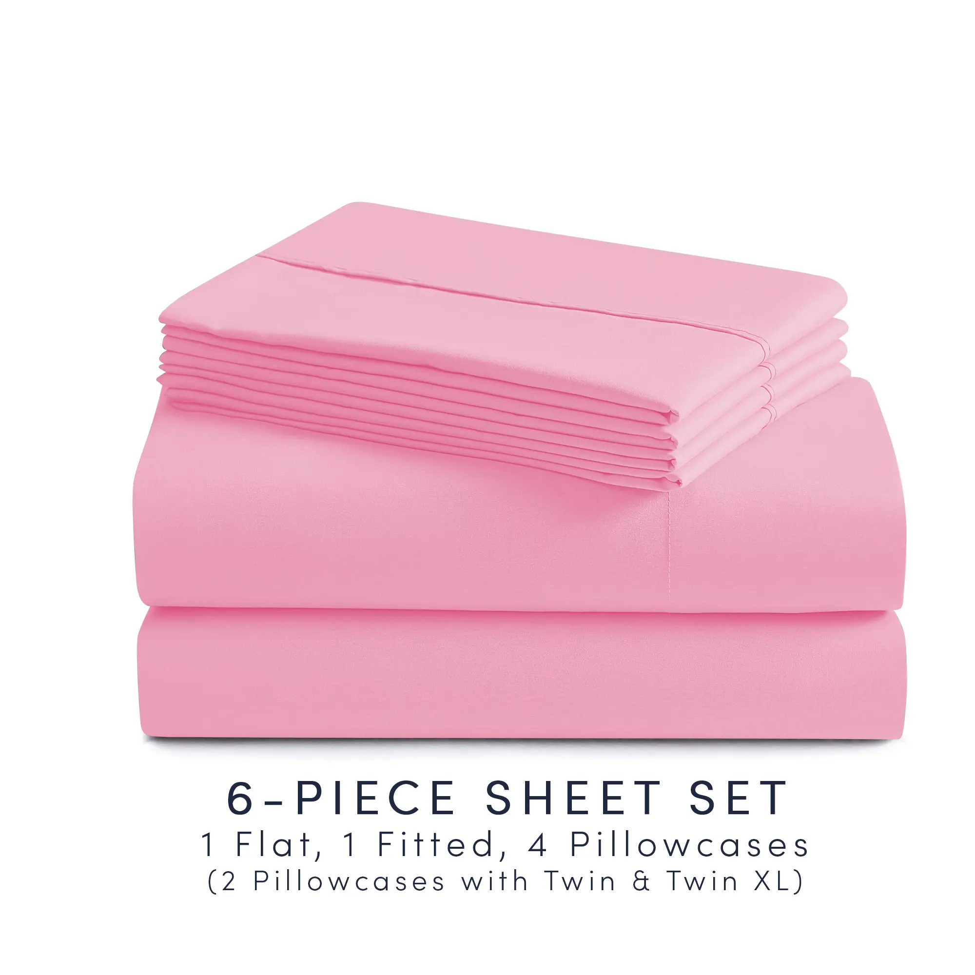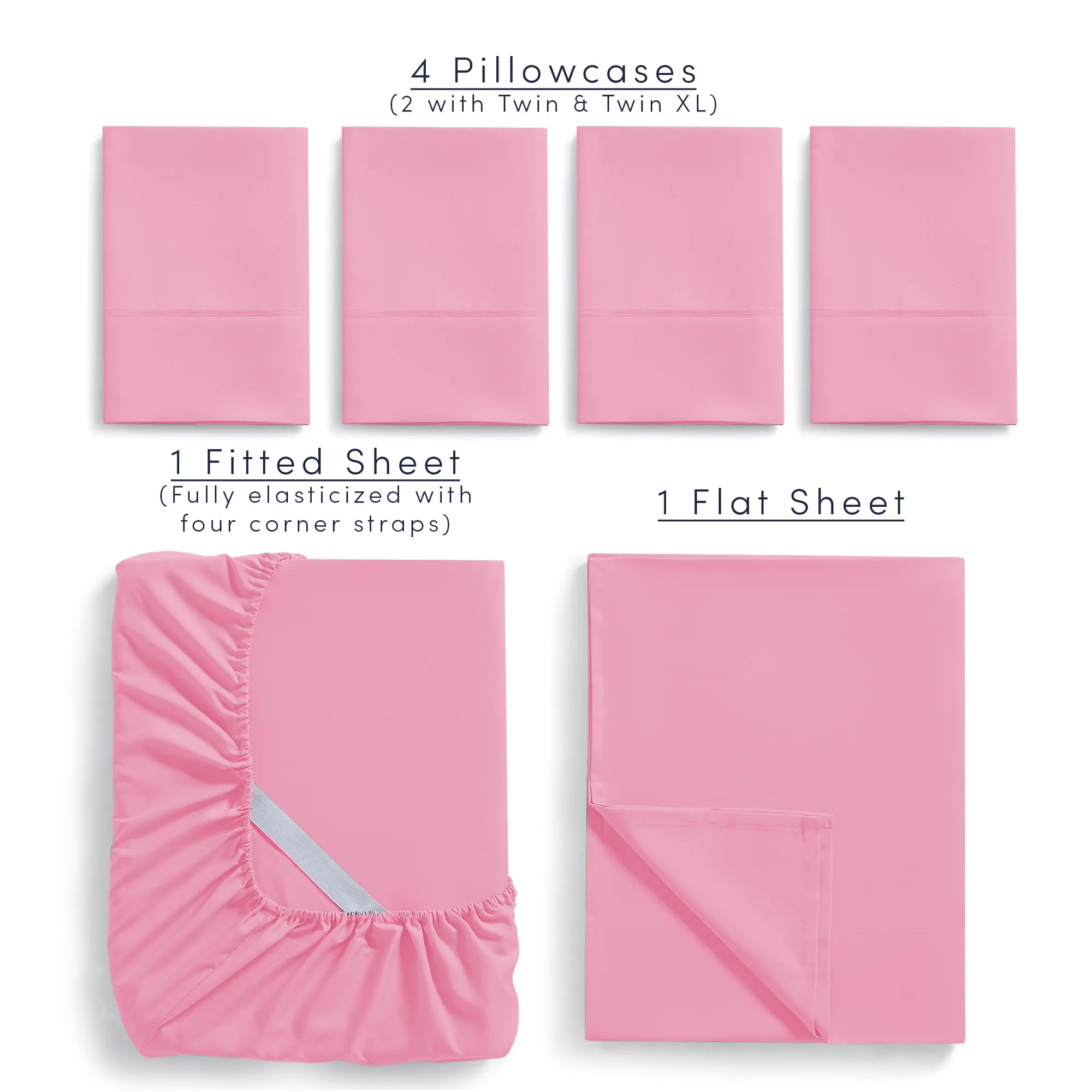 Β·6-piece set includes: 4 pillowcases, 1 fitted sheet, and 1 flat sheet (2 pillowcases with Twin and Twin XL options)