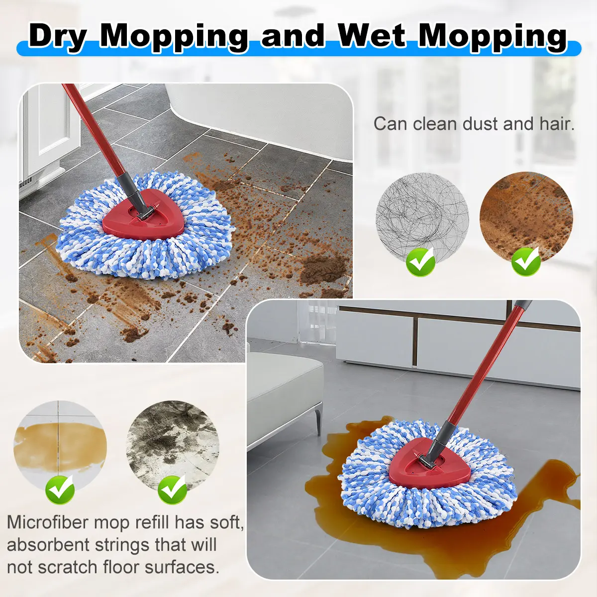 1/2/3pcs Microfiber Spin Mop Replacement Heads, Spin Mop Refill, Compatible with Vileda/o-Cedar Easywring 1 Tank System, Easy Installation, High Efficiency Cleaning, Kitchen Bathroom Cleaning Accessories