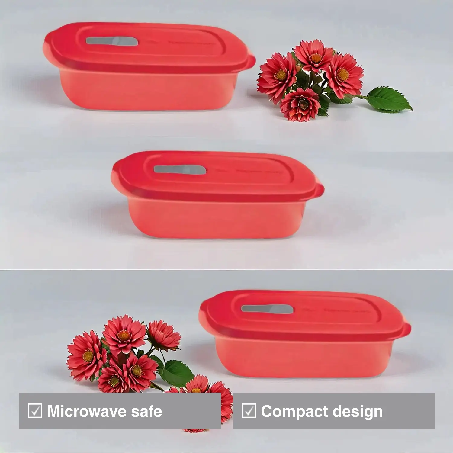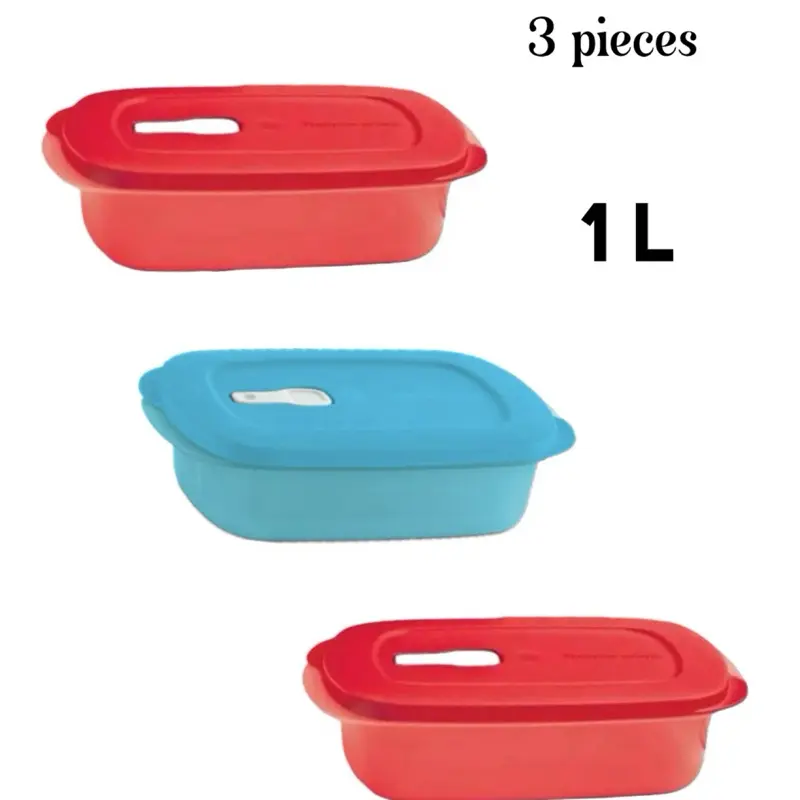Microflash rectangular sin divisiones capacity 1Litro Para microondas rojos 3 piezas. Food Storage Utility Containers High Quality Plastic