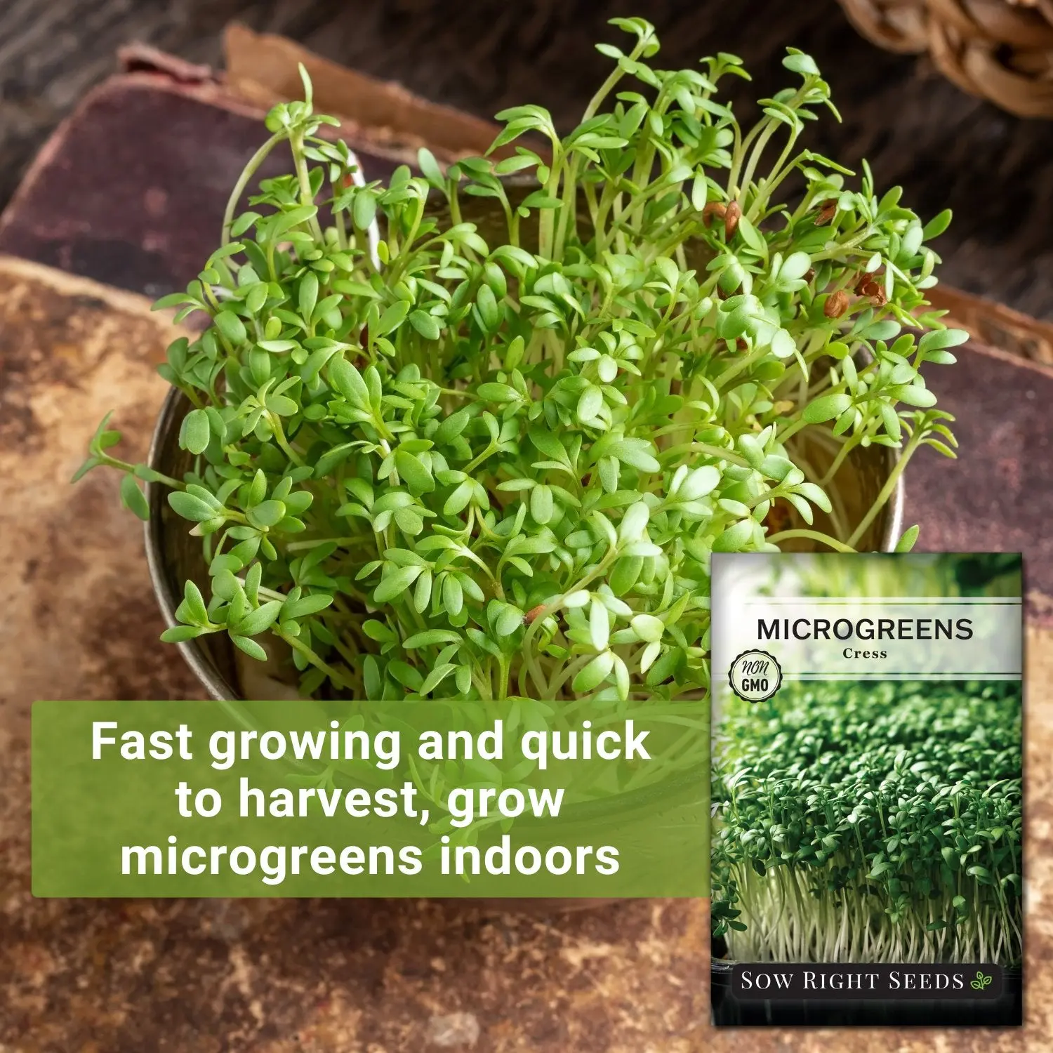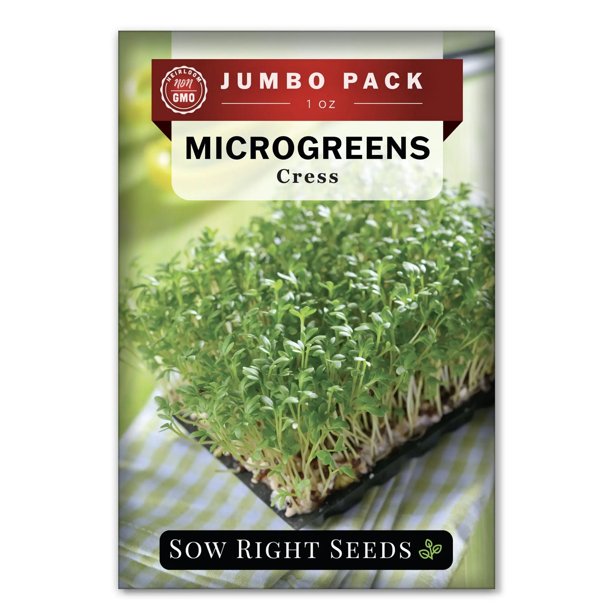 Cress is an intensely peppery microgreen. Great for those who love to add some spice to their life. Ready to harvest in just 8 to 12 days. Can be grown in a thin layer of soil or fiber mat in a shallow tray. No fertilizer or grow lights needed. A window sill has enough light. Standard seed packet contains 12 g (about 4,800 seeds). Jumbo packet contains 1 oz (about 11,000 seeds).
