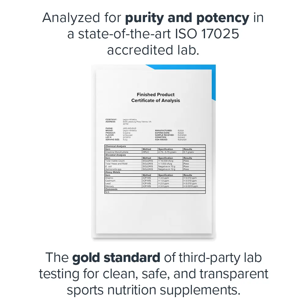 Legion Micronized Creatine Monohydrate is a unflavored powder, perfect for mixing into your beverage. Each 1-scoop (5g) provides pure micronized creatine monohydrate. The transparent label ensures you get exactly what you need. Ideal for athletes and fitness enthusiasts, it supports strength training and creatine replenishment.