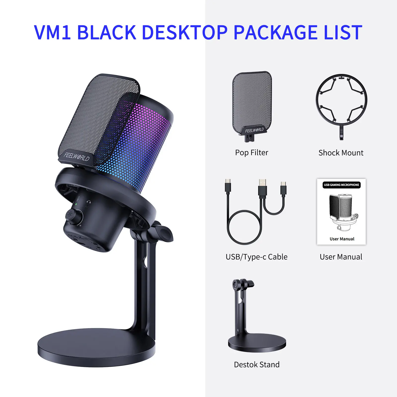 ✨ FEELWORLD VM1 White Gaming PC USB Microphone is a condenser mic with a boom arm stand. It features noise cancellation and RGB light. Suitable for gamers, YouTube, Twitch, podcasts, streaming, and recording. Compatible with PS4 and PS5. Enhance your gaming experience with this microphone.