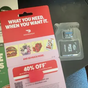 It came with coupons for doordash and like multiple food things which was such a good surprise!!! Lol perfect card for camera will definitely repurchase