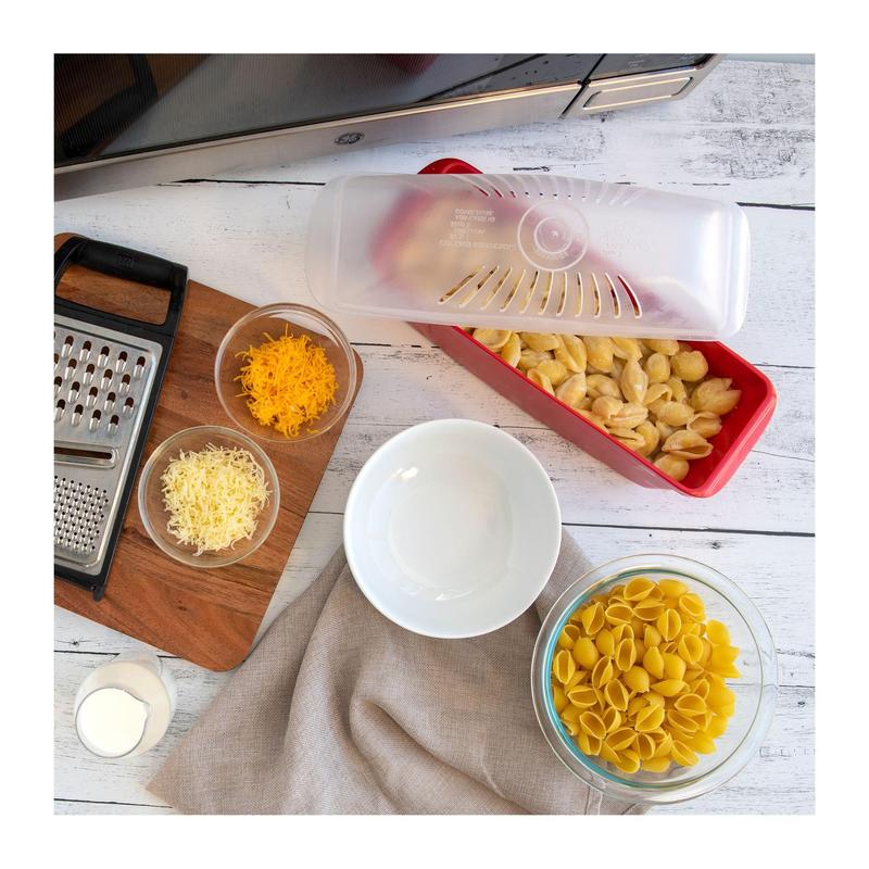 It does cook the pasta like it says but the plastic gets so hot it hard to pick up even with oven mites.