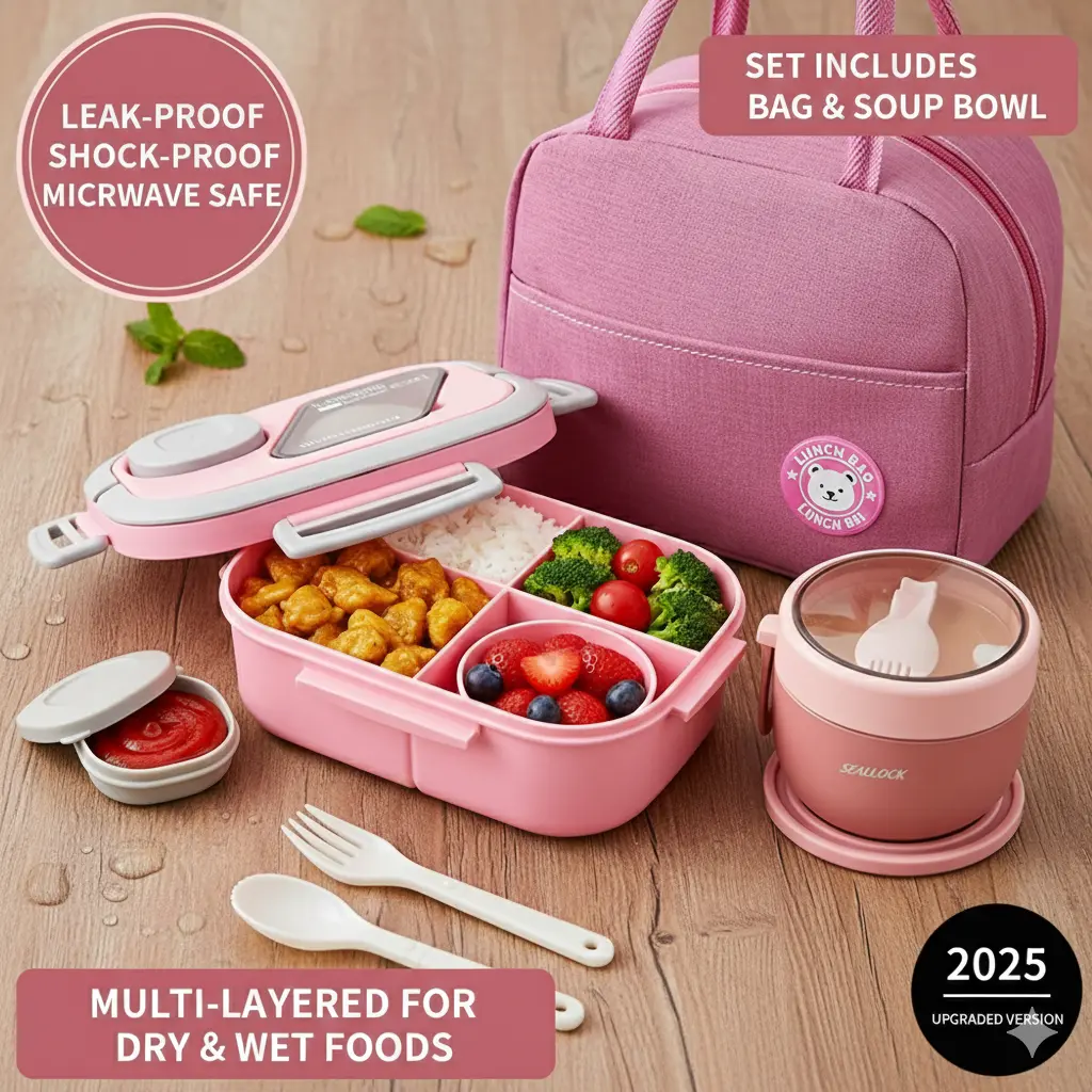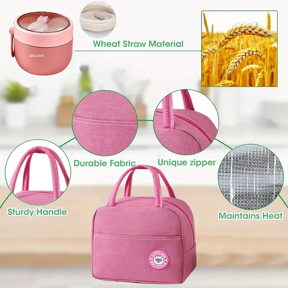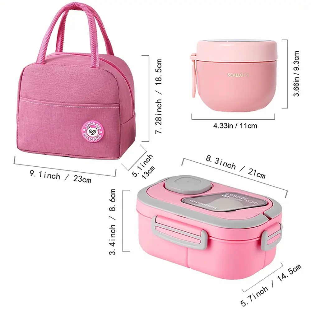 Perfect all-in-one lunch set! Excellent compartments, microwave safe, and very convenient. The included bag and cup are fantastic.