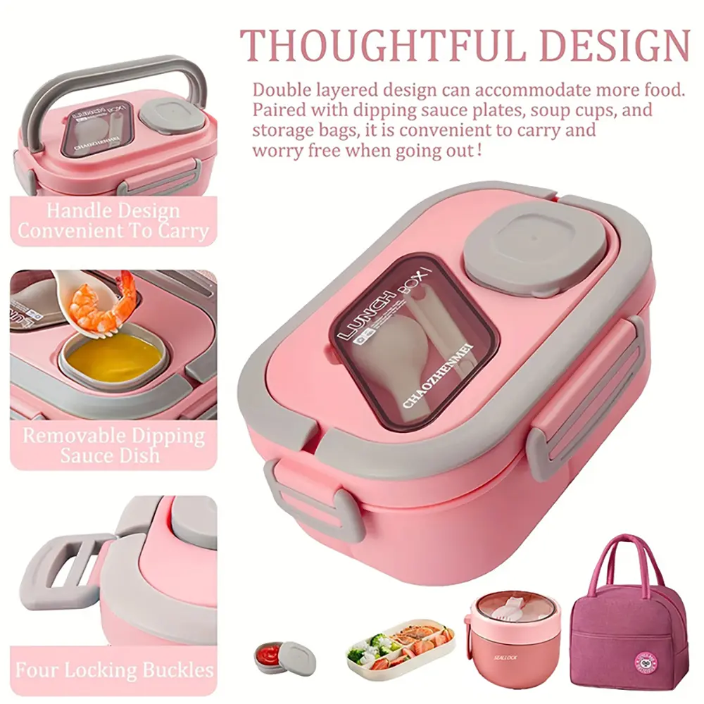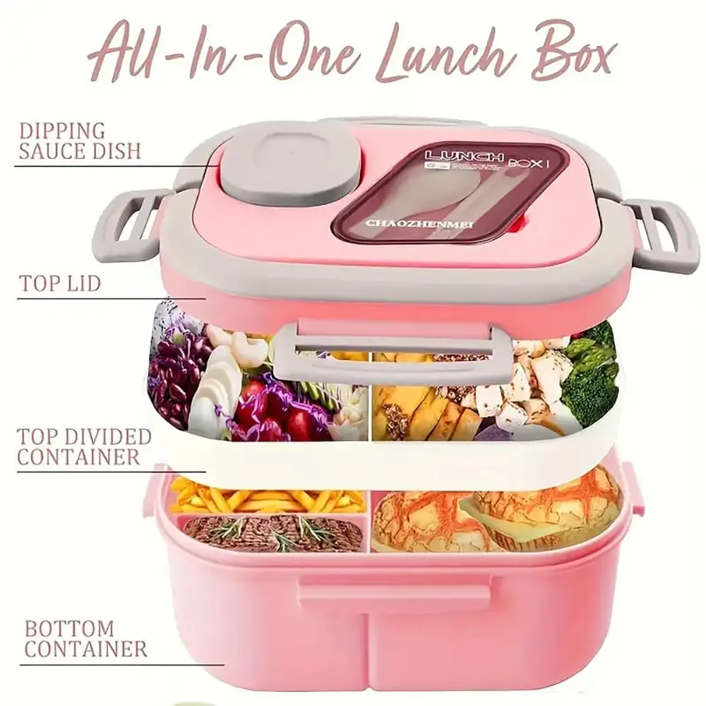 I recently got this double-layered bento box, and it's incredibly convenient! I really like its compartmentalized design; different foods can be kept separate, so there's no need to worry about them mixing together. I prepare it in the morning, and when I open it at lunchtime, is still fresh.