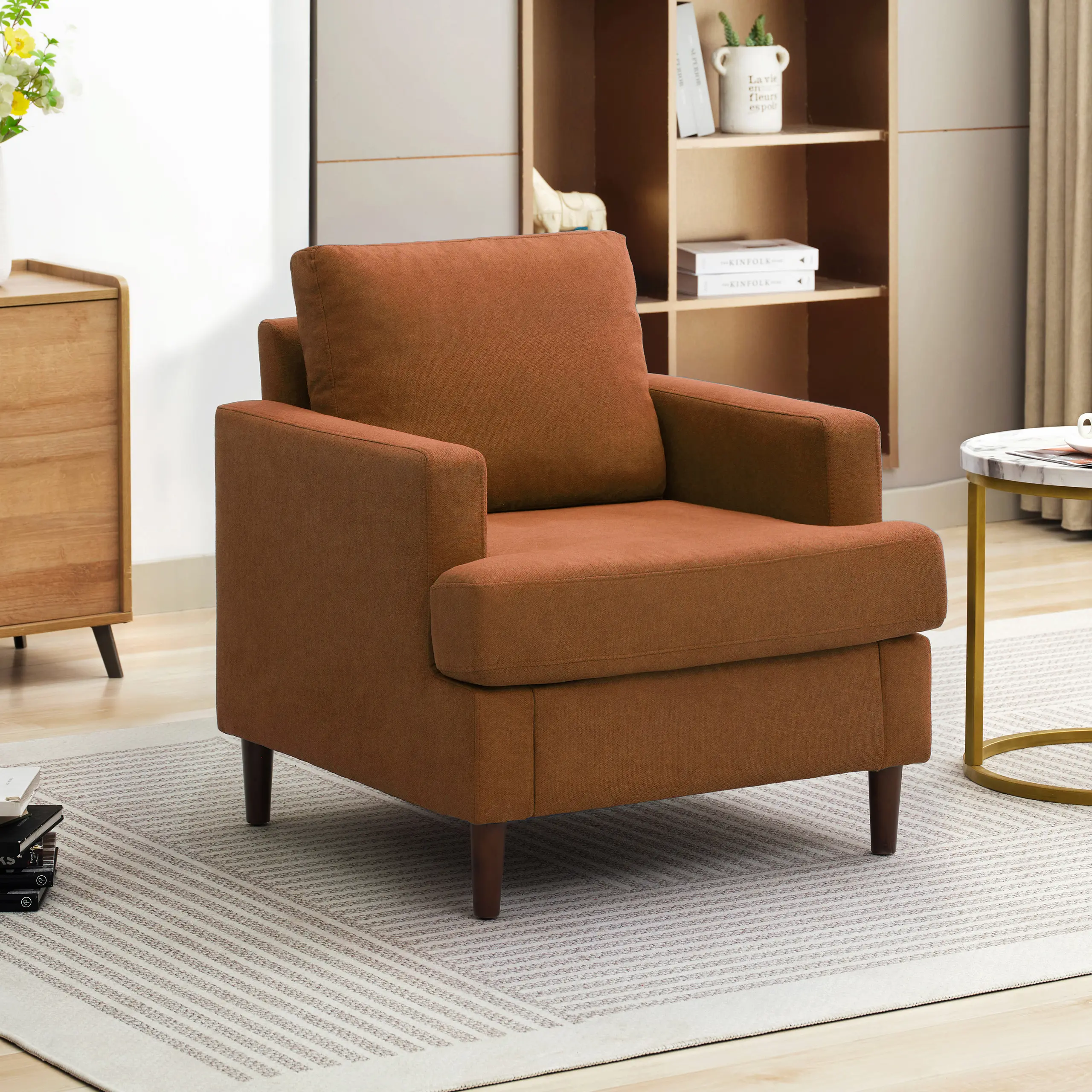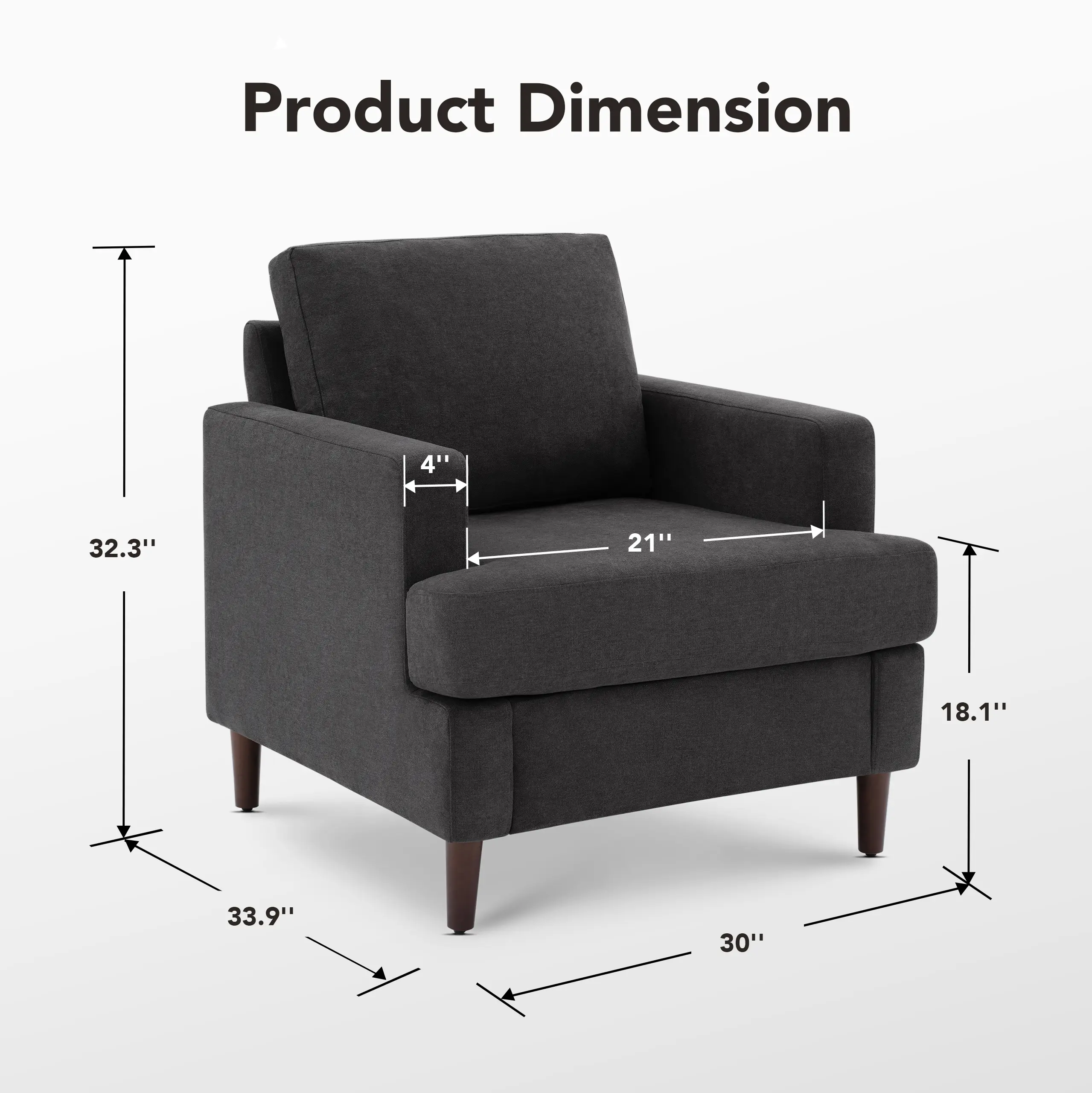 ·BUILT TO LAST:Crafted with a robust hardwood frame and solid wood legs,this chair is a statement of durability,making it the ideal armchair; No need to worry about scuffs,as the legs are thoughtfully fitted with non-slip felt pads