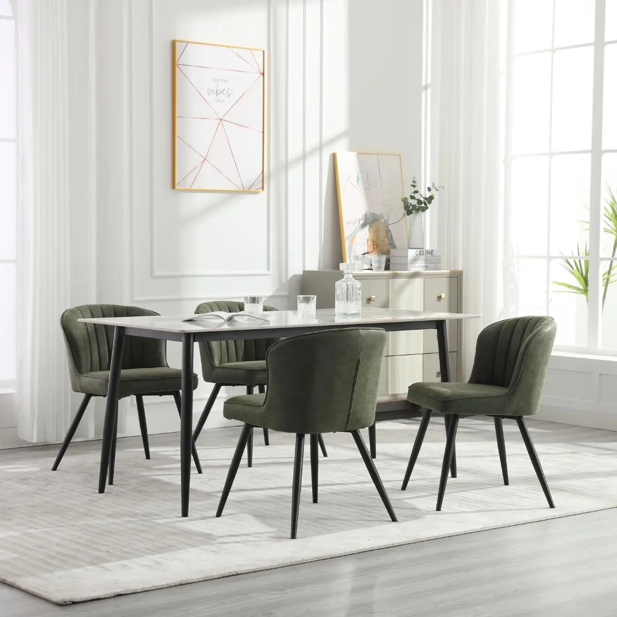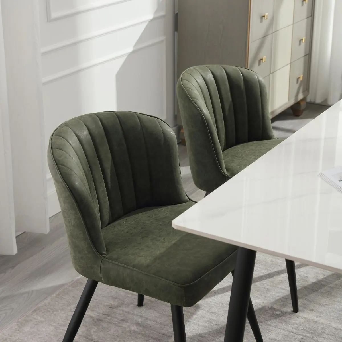 ·【Sturdy Metal Legs】The dining room chairs are supported by sturdy metal legs, providing excellent stability and durability. More importantly, each metal leg has an adjustable anti-skid pad so that the kitchen chairs can be better balanced without scratching your floor.
