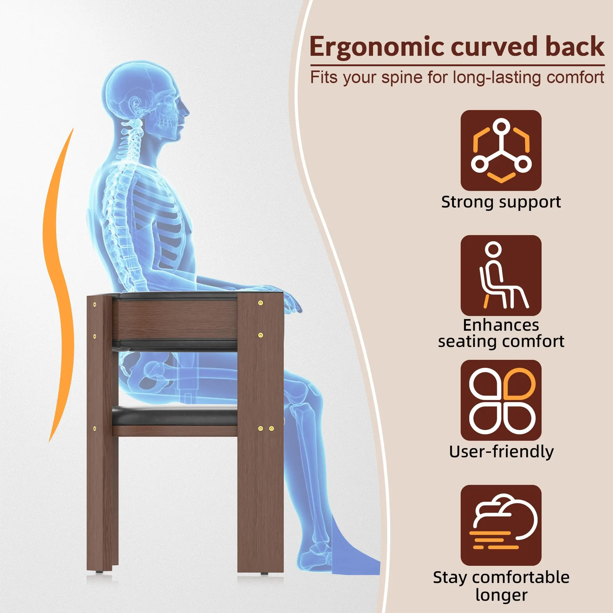 ·【Sturdy Rubber Wood Frame】Wood dining chair set of 2 crafted from rubber wood with a walnut veneer finish, the frame ensures stability and durability while adding a warm, natural tone to your home décor