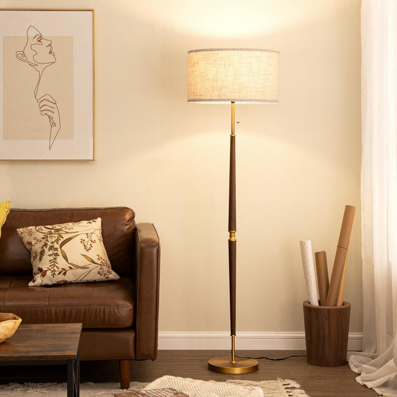 ·【Simple Mid-Century Modern Design】With a beige linen drum lampshade, the standing floor lamp creates a warm, soft, and cozy ambiance for your living room, bedroom, office, reading corner, etc.