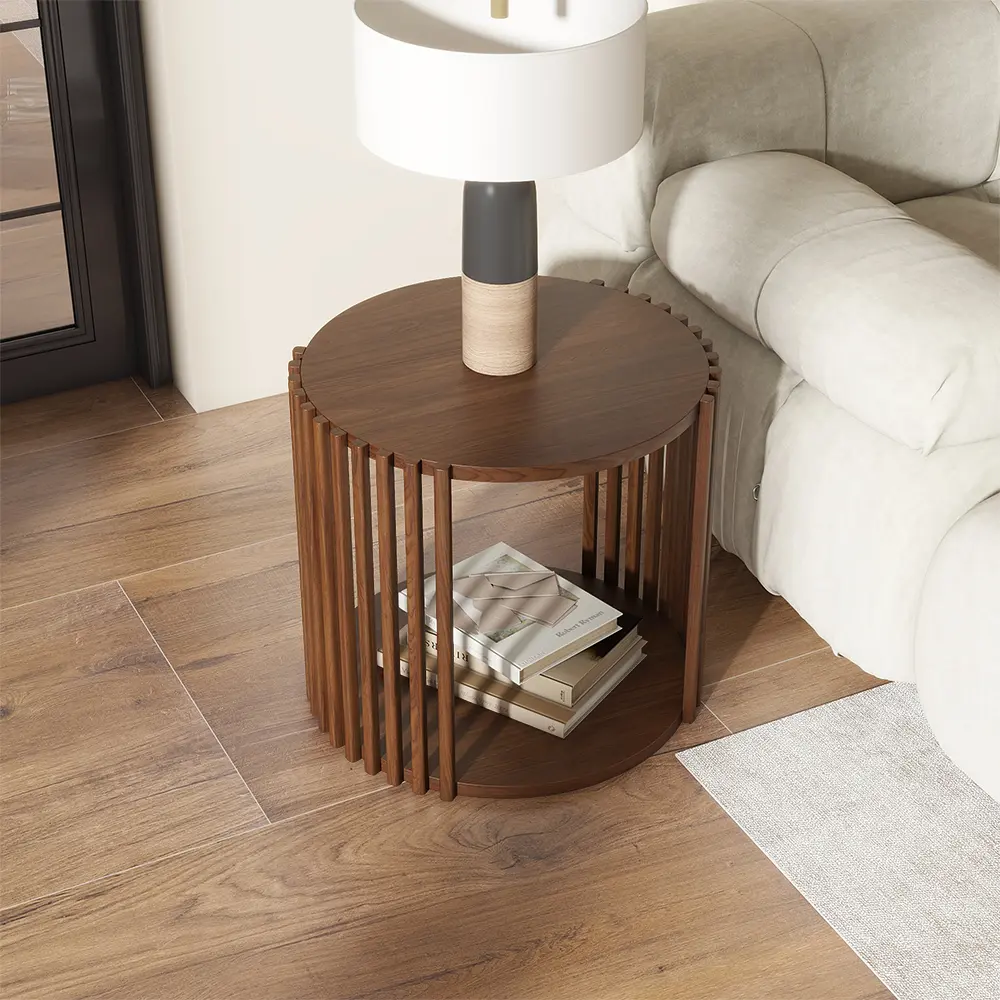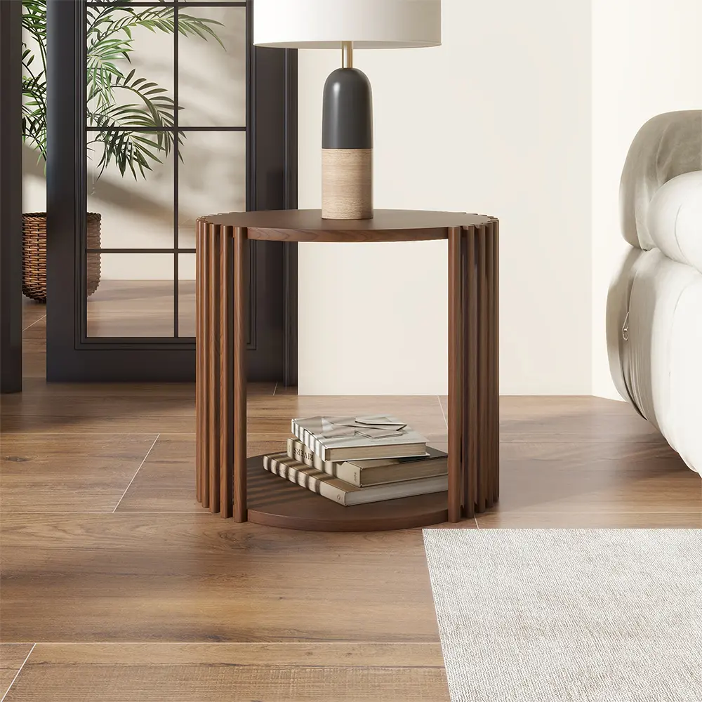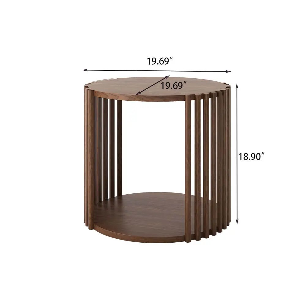 19.68" Mid-century Modern Round Side Table, Wood End Table, Walnut Color, Fully Assembly