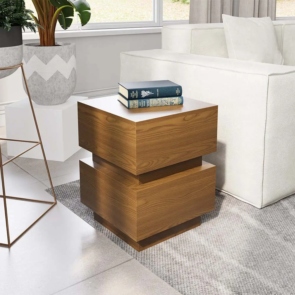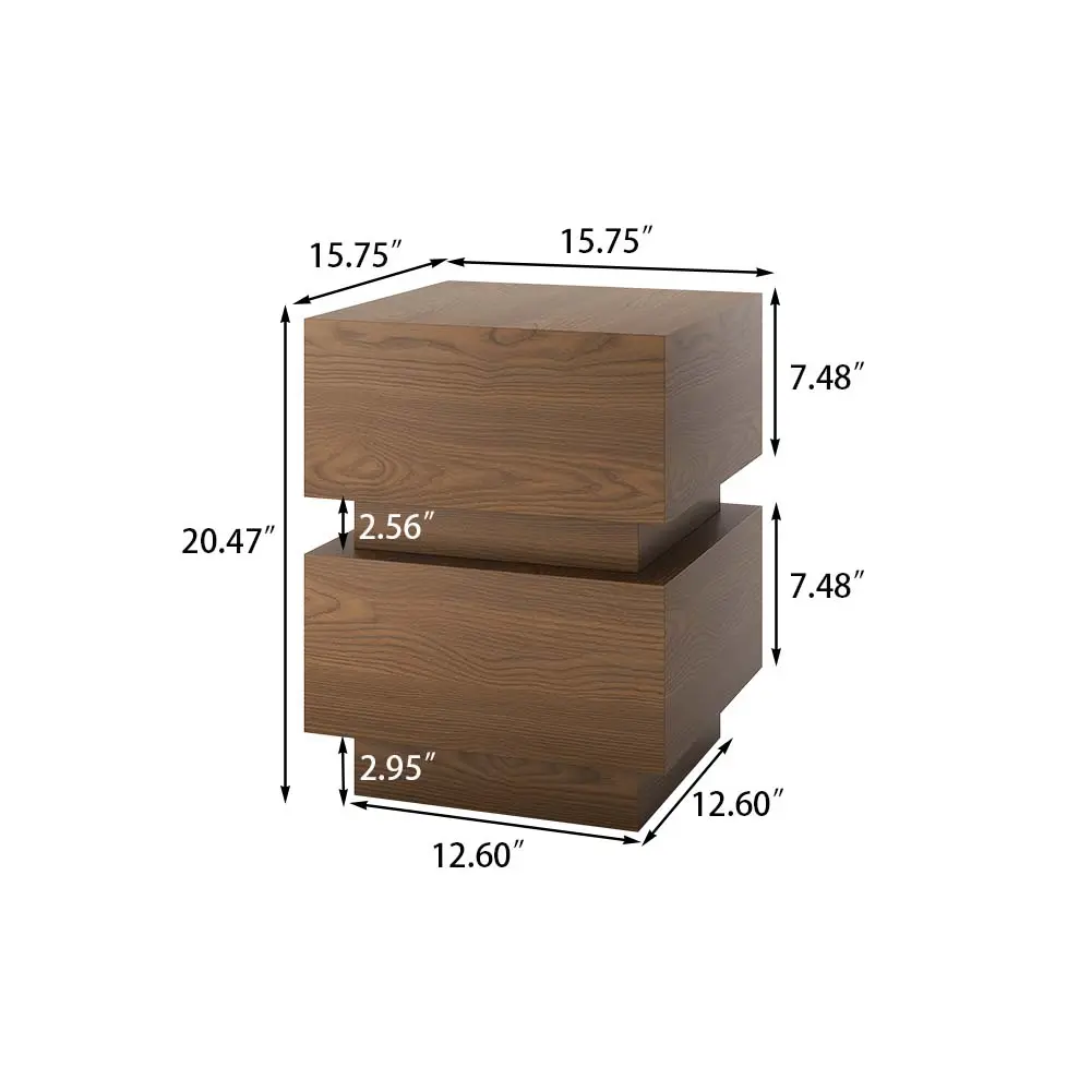 Mid-century Modern Square Side Table, 15.74" Wood End Table, Walnut Color, Fully Assembly