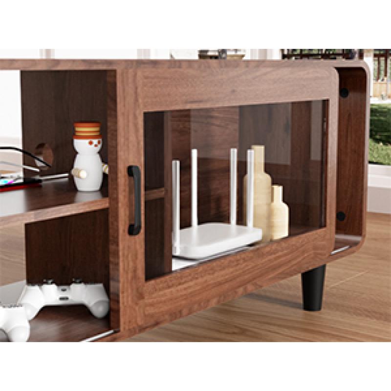 ·[Eye-pleasing TV Companion]Glass door match the walnut texture surface, this TV stand with storage blends modern and Mid-century. If your bedroom, living room or entryway is calling for a new upgrade with storage, this TV stand is a great addition.