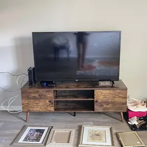 ·【Crafted from Wood Material】This TV stand is capable of accommodating TVs up to 55 and 60 inches, with dimensions of 53.54"W x 15.75"D x 18.9"H and max weight capacity of 150lb. Its mid-century style and construction entirely from engineered wood make it an ideal entertainment center for your family, as well as a stunning decorative piece for your living room, bedroom, home office, or lounge.