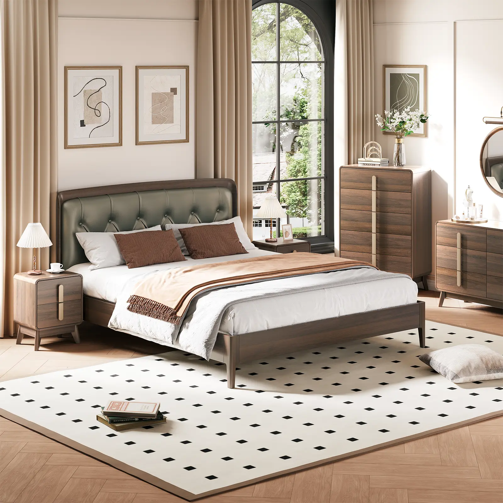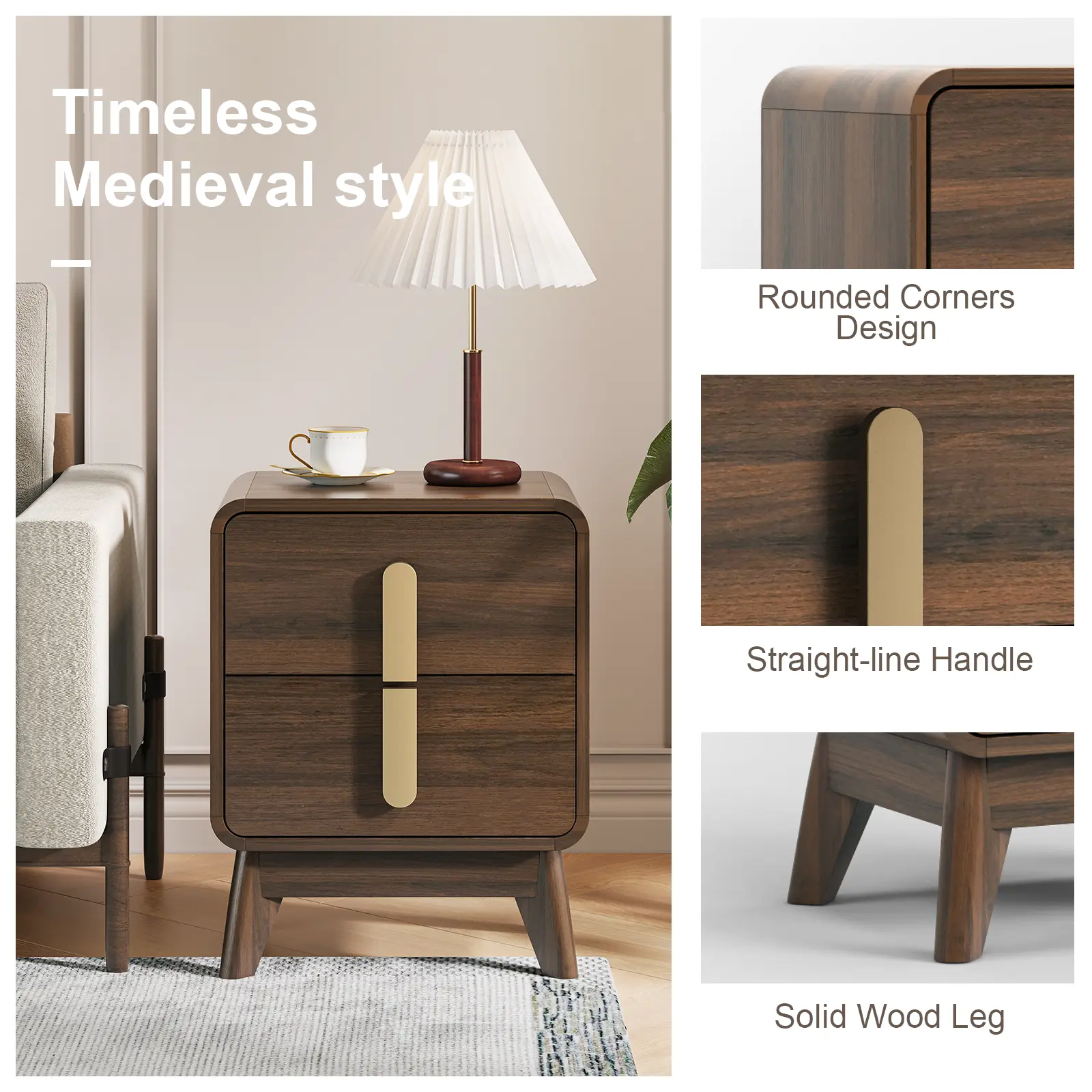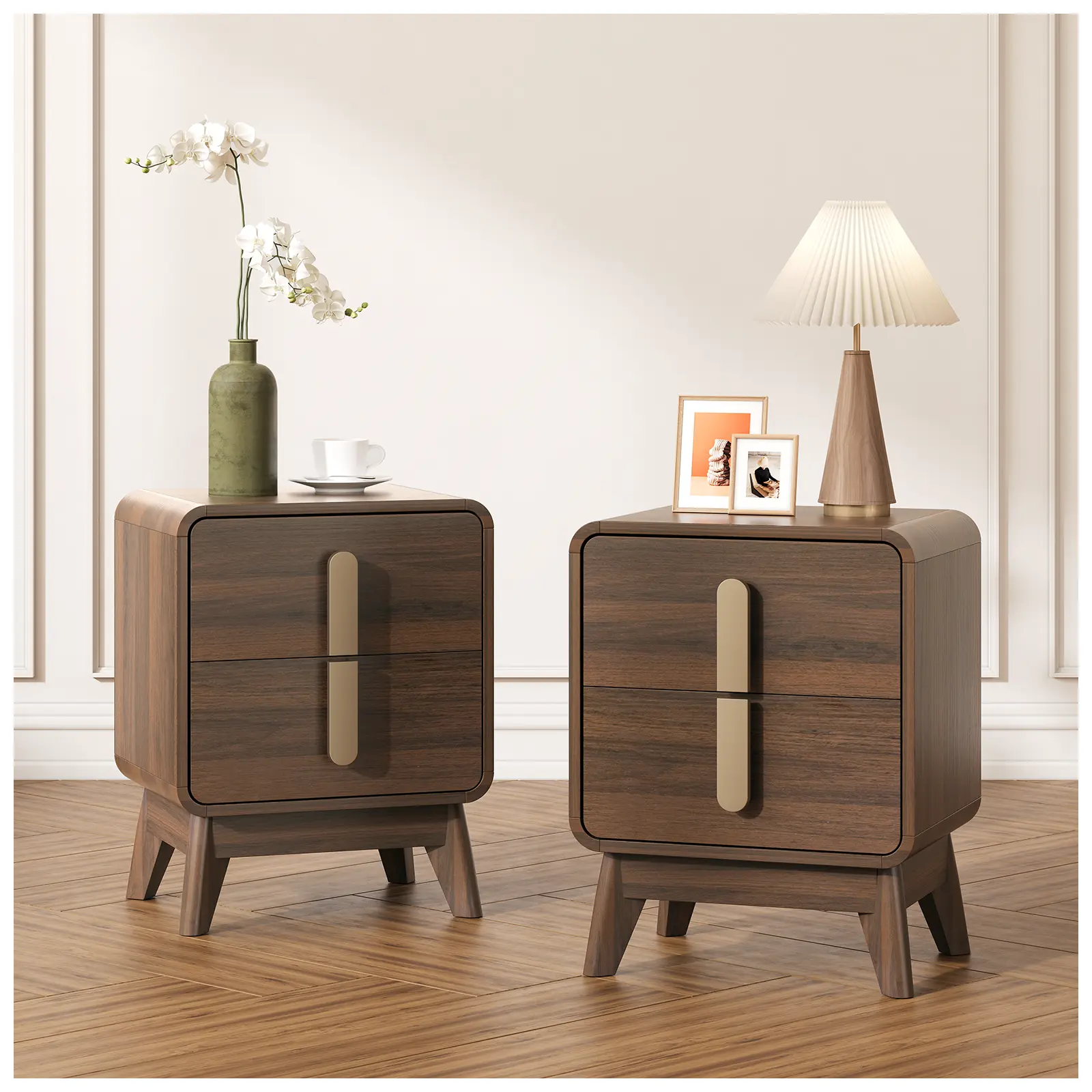 ·Thoughtful Design Details: Featuring rounded, carefully polished corners to prevent injuries and keep your family safe. Tall cabinet legs make cleaning underneath easy, while a reserved space for skirting boards ensures the night stand set 2 sits flush against the wall for added stability