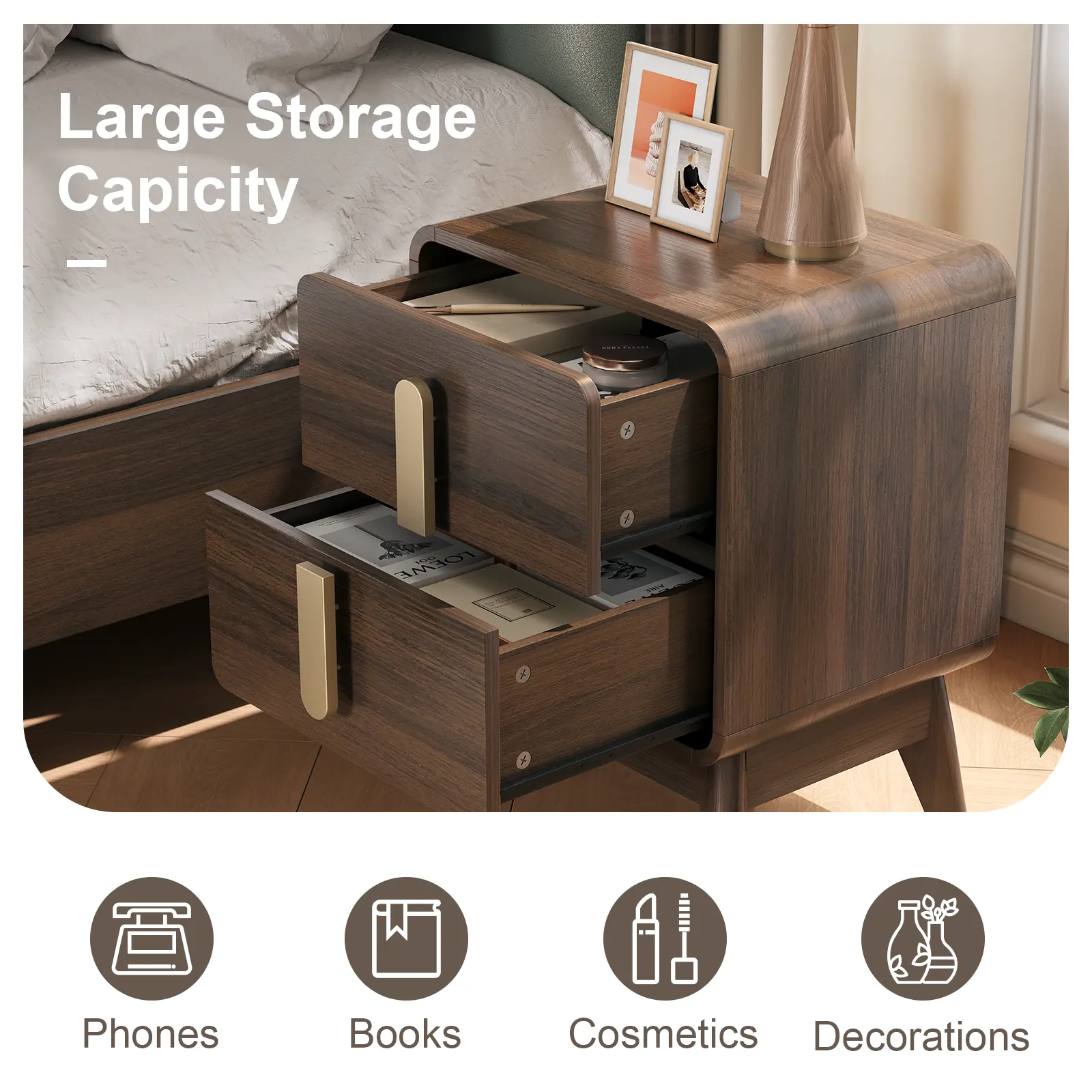 ·Sturdy Nightstand: Made from high-quality wood, this wooden nightstand guarantees both sturdiness and long-lasting performance. Its solid construction ensures the longevity of the piece, allowing it to withstand everyday use. Equipped with drawers, this bedside table with drawers provides generous storage space for your belongings, making it easy to keep books, magazines, glasses, and other bedside essentials within arm's reach
