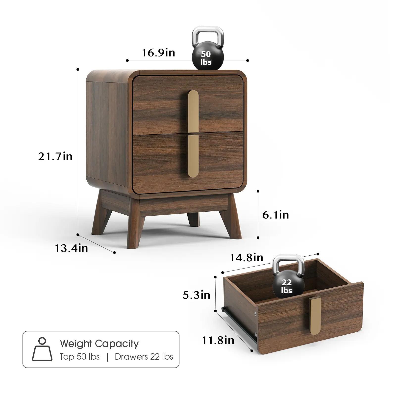 ·Combination of Classic and Modern: This mid-century modern side table has 2 metal-handled drawers and curved edges that create a soft and sophisticated atmosphere in your living space. Smooth drawer slides ensure effortless operation. This clean-lined nightstand is a striking choice for any traditional or contemporary room