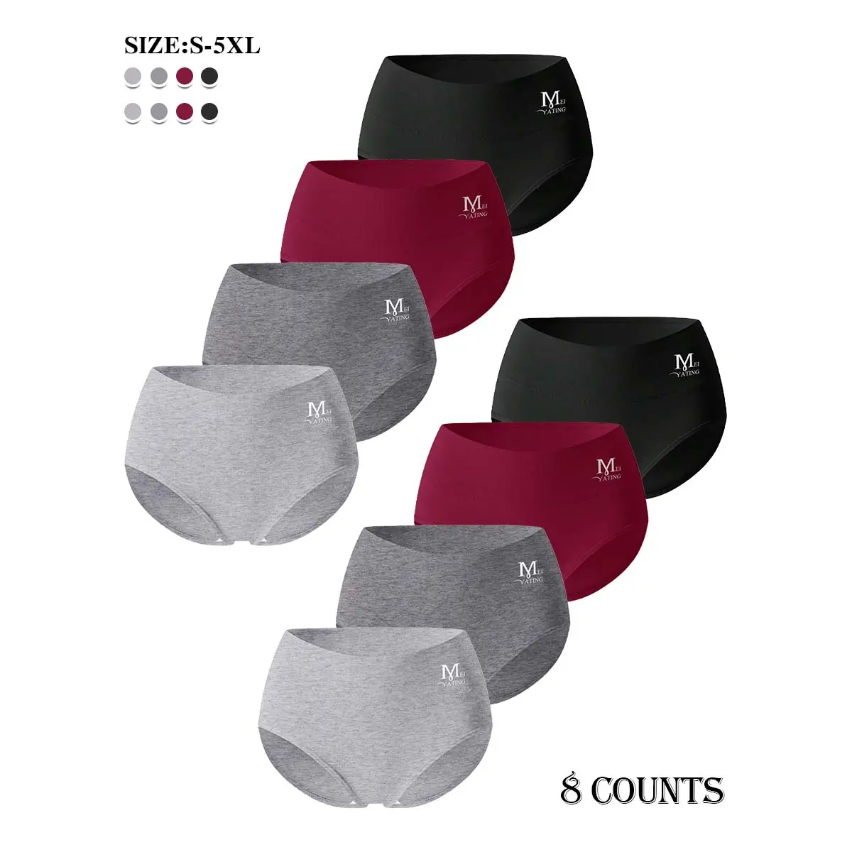 4/6/8 Pcs Ladies Mid High Waist Cotton Underwear