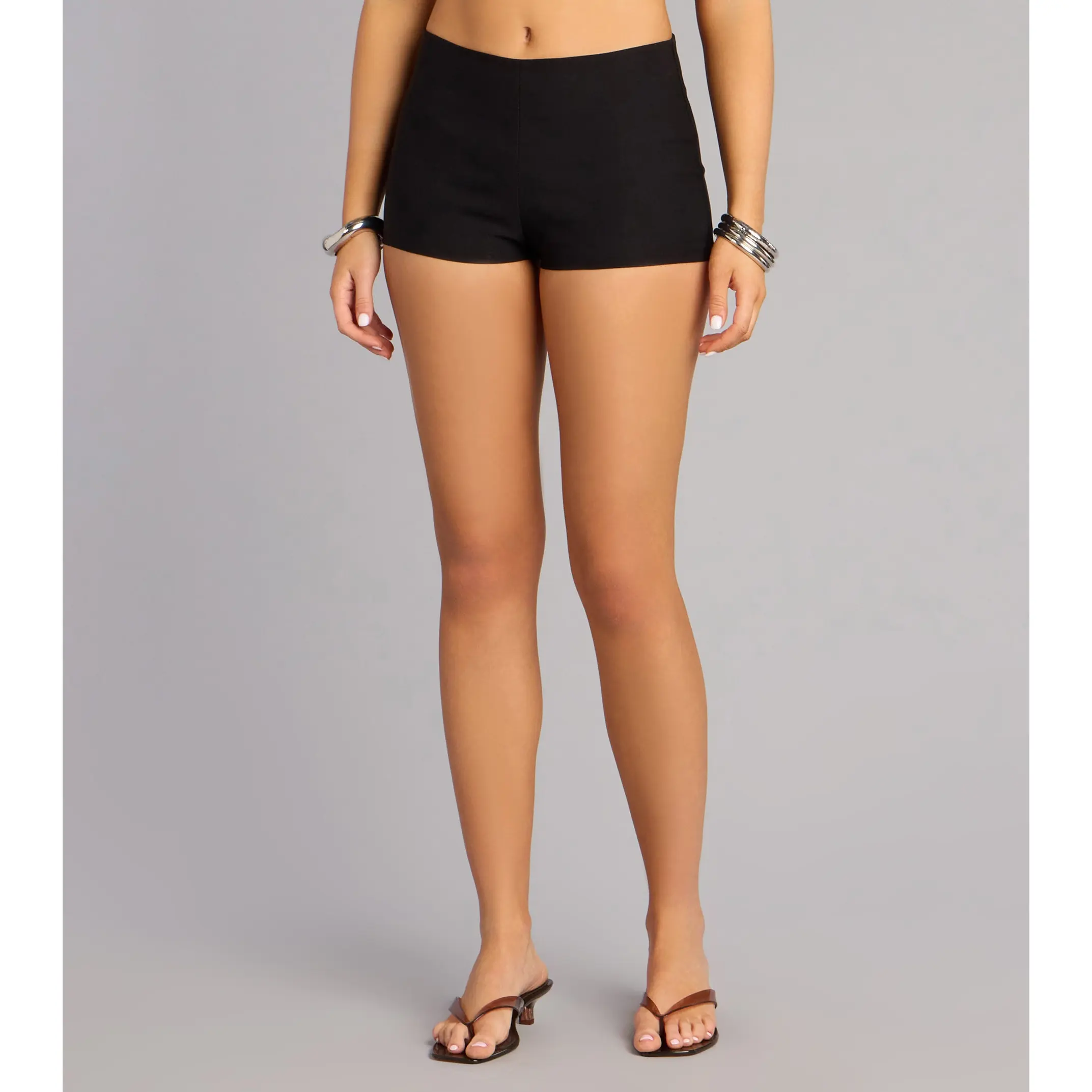 Elevate your style with these hot shorts for any fun plans! These mid-rise shorts provide a comfortable fit and accentuate your curves in a sleek, form-hugging fit.