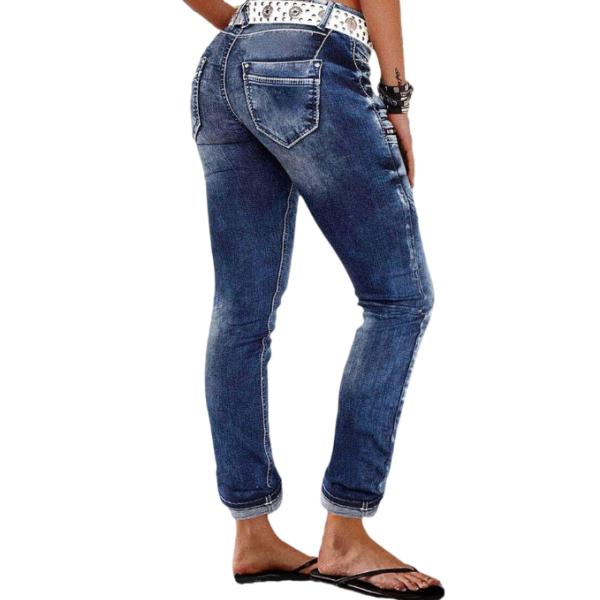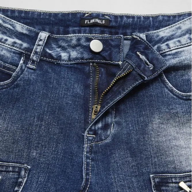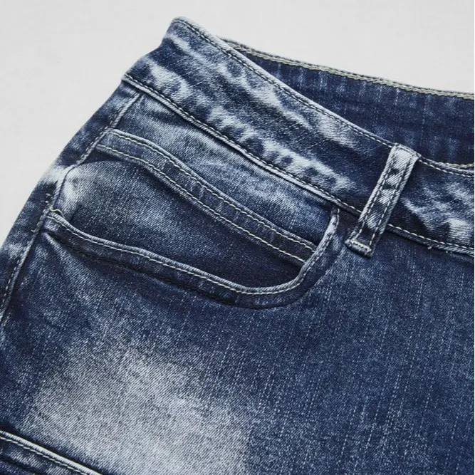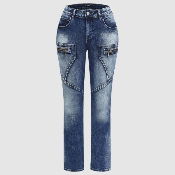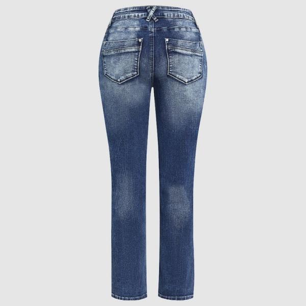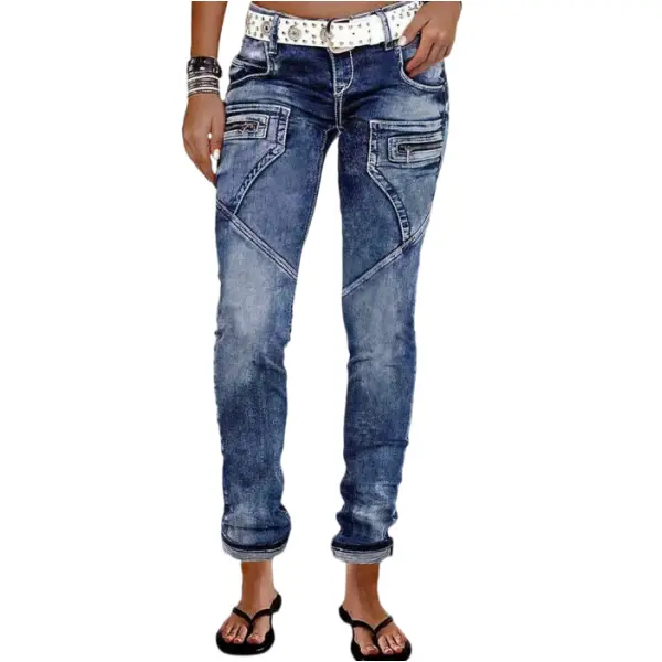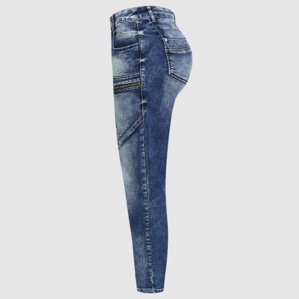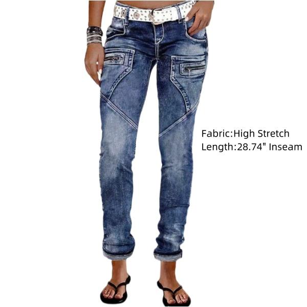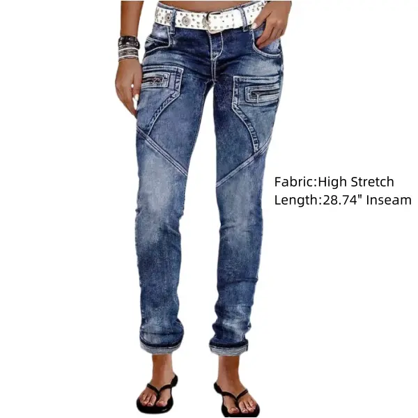 Stay stylish and comfortable with our Zip Pocket Roll Hem Mid Waist Crop Jeans Without Belt. Made with a blend of 75% cotton, 23% polyester, and 2% spandex, these jeans are perfect for all seasons.