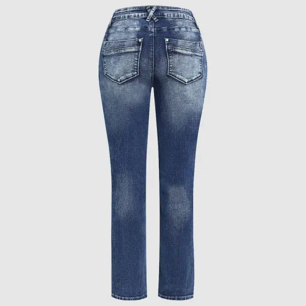 5. Zip Pocket Roll Hem Mid Waist Crop Jeans Without Belt Denim Skinny
