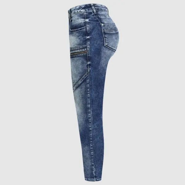 Zip Pocket Roll Hem Mid Waist Crop Jeans Without Belt Denim Skinny