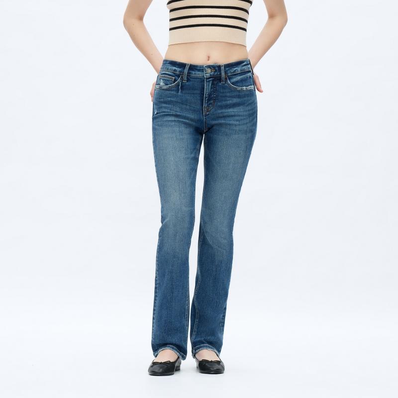 5. Vogatiques Mid Waist Straight Leg Jeans Distressed Stretchy Denim Pants New Jeans Minimalist Tummy Control Regular Size Plus Size