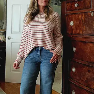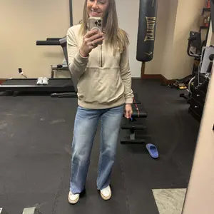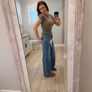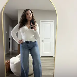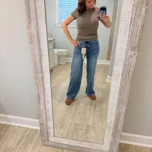 I am obsessed with these jeans! Finally wide leg jeans that still hug your butt! Stretchy but TTS!