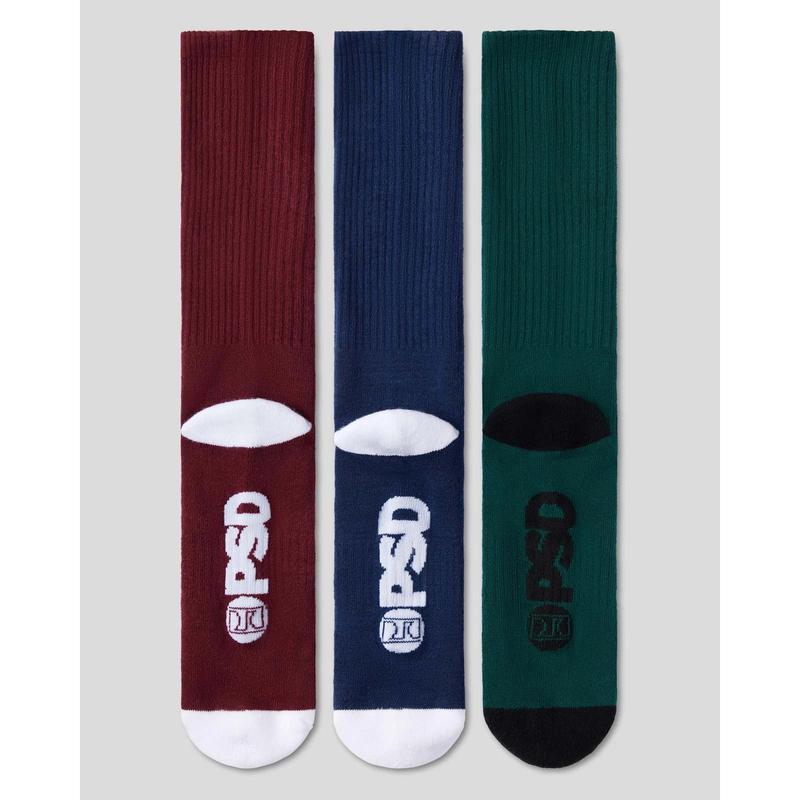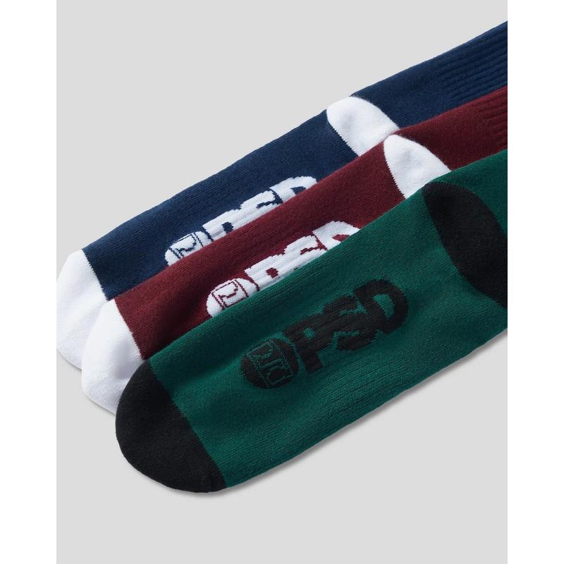 PSD Unisex Dark Tones Logo Crew Sock 3 Pack - Mid Weight Crew Socks for Men and Women