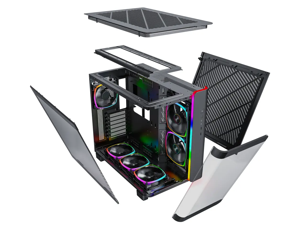 King 95 Pro features 2 RX140 PWM ARGB side fans, 3 RX120 PWM ARGB bottom fans, 1 AX120 PWM ARGB rear fan, and includes a 1 to 10 ARGB PWM Fan Hub for precise control of your cooling system.