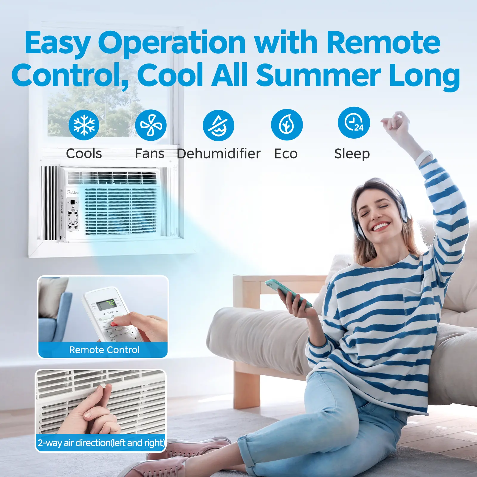 ·3 IN 1 COMFORT - The Midea EasyCool Window Air Conditioner unit has three modes to help your house, apartment, office, or room be as comfortable as possible. It can cool a space up to 150 sq. ft. quickly, circulate air with its 3-speed fan, or reduce humidity utilizing the dehumidifier mode.Controller type:Remote Control.