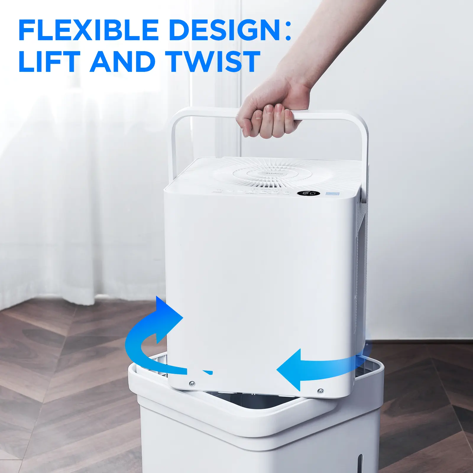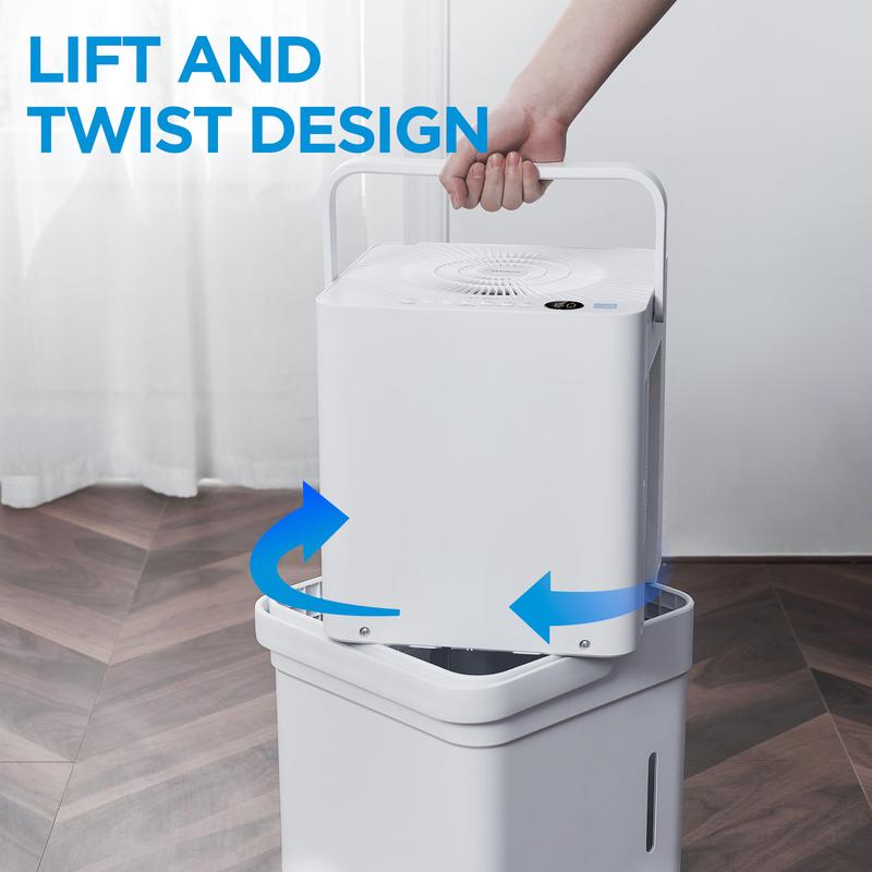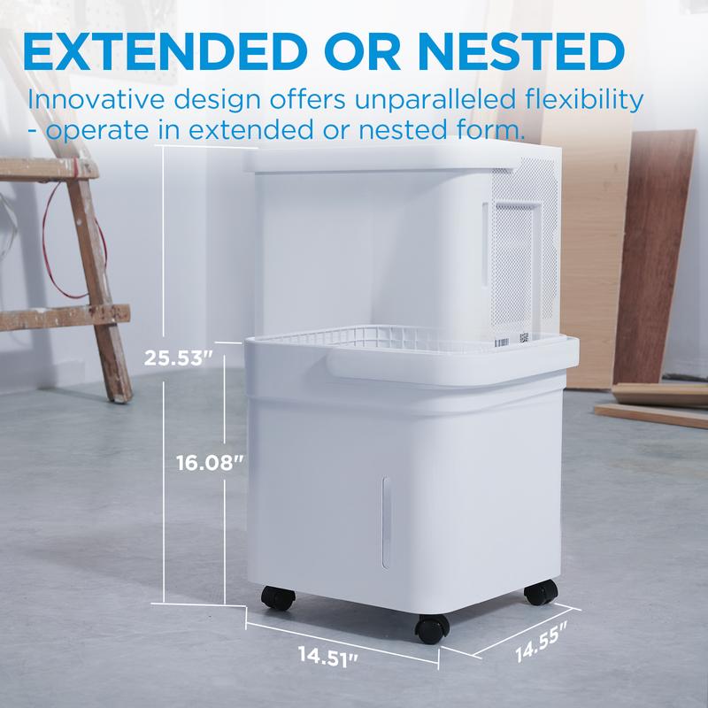 ·LIFT AND TWIST- World's first extendable dehumidifier offers unparalleled flexibility - operates in extended or nested form. You can easily find a place to store the unit when the space becomes dry, or extend it to its full capacity whenever you need it