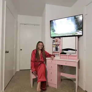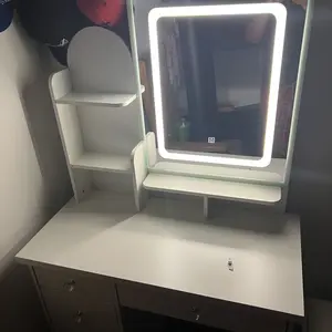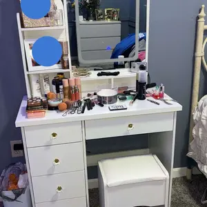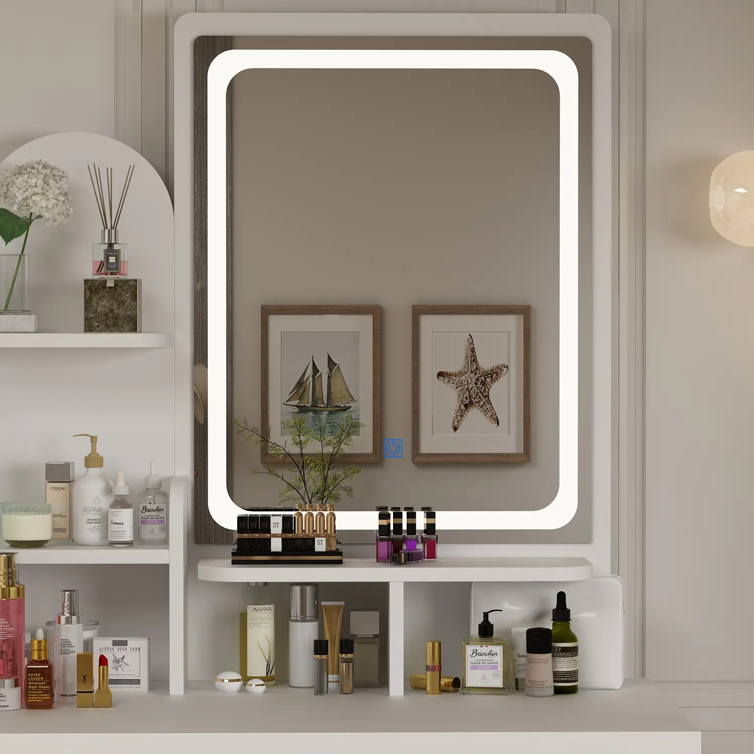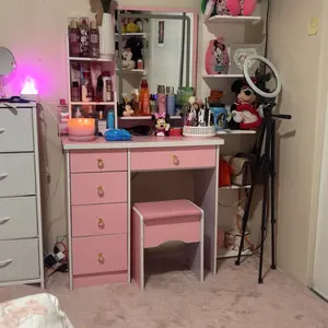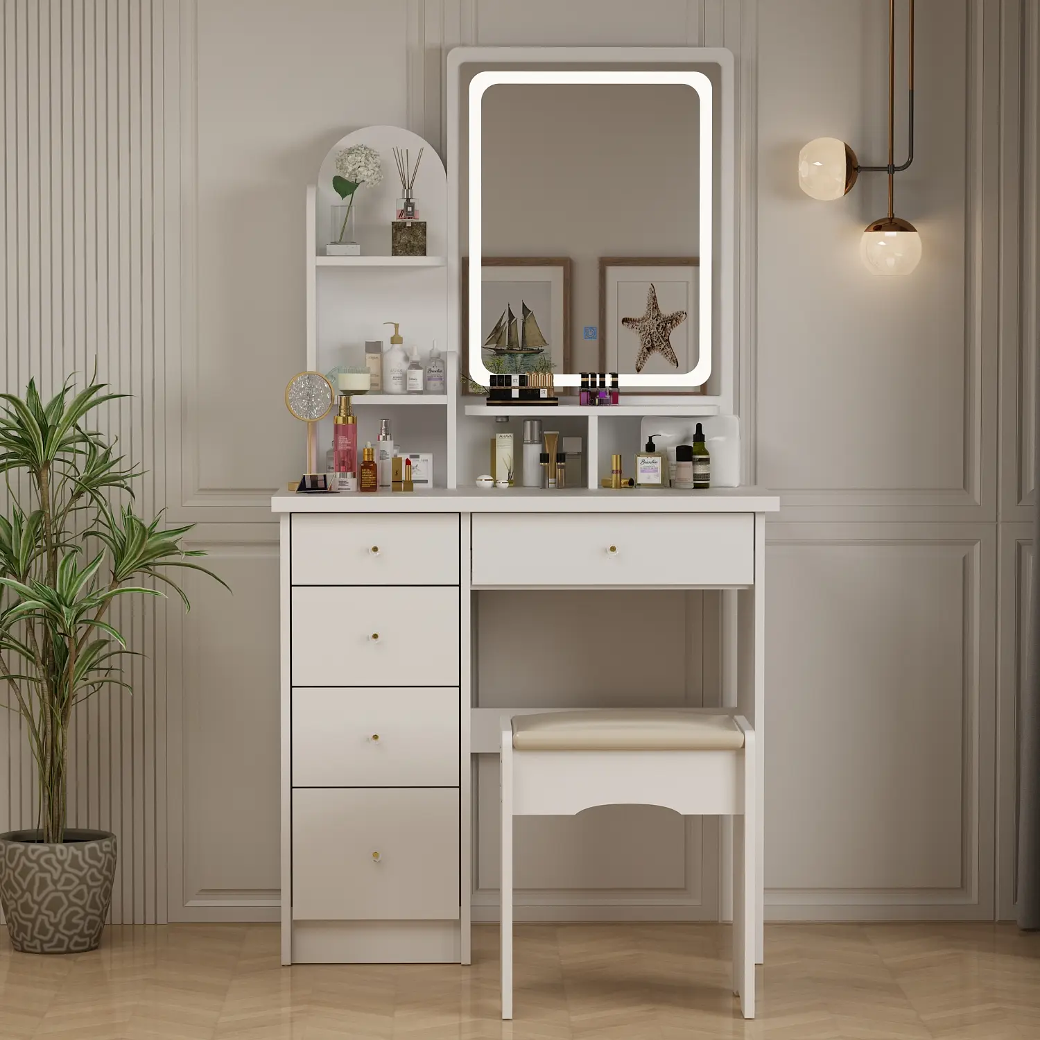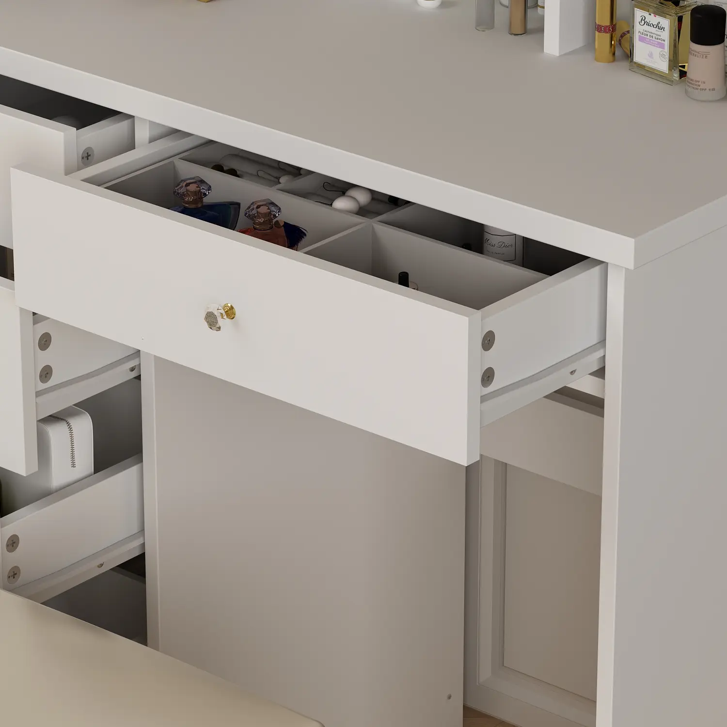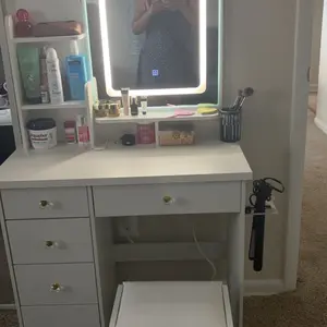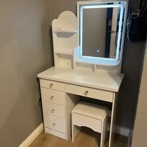 ·【Large Storage Space】3 open storage shelves, large makeup mirror, 5 drawers offer ample storage space for your makeup, perfumes, lotions, nail polish, hair accessories and more. Every day you can have all your beauty supplies and favorite collectibles in one place and in a fashionable, organized style.