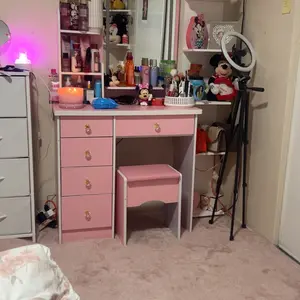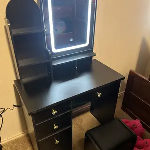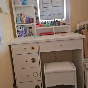 ·【Modern Finish】This vanity table and stool set is designed to have a storage cabinet for your makeup. Vanity Table and Stool Set is a stylish and functional contemporary piece of furniture to your home. The finish and contemporary design are adaptable for any decor style. It is perfect to prepare yourself for a day of work or important date at night.