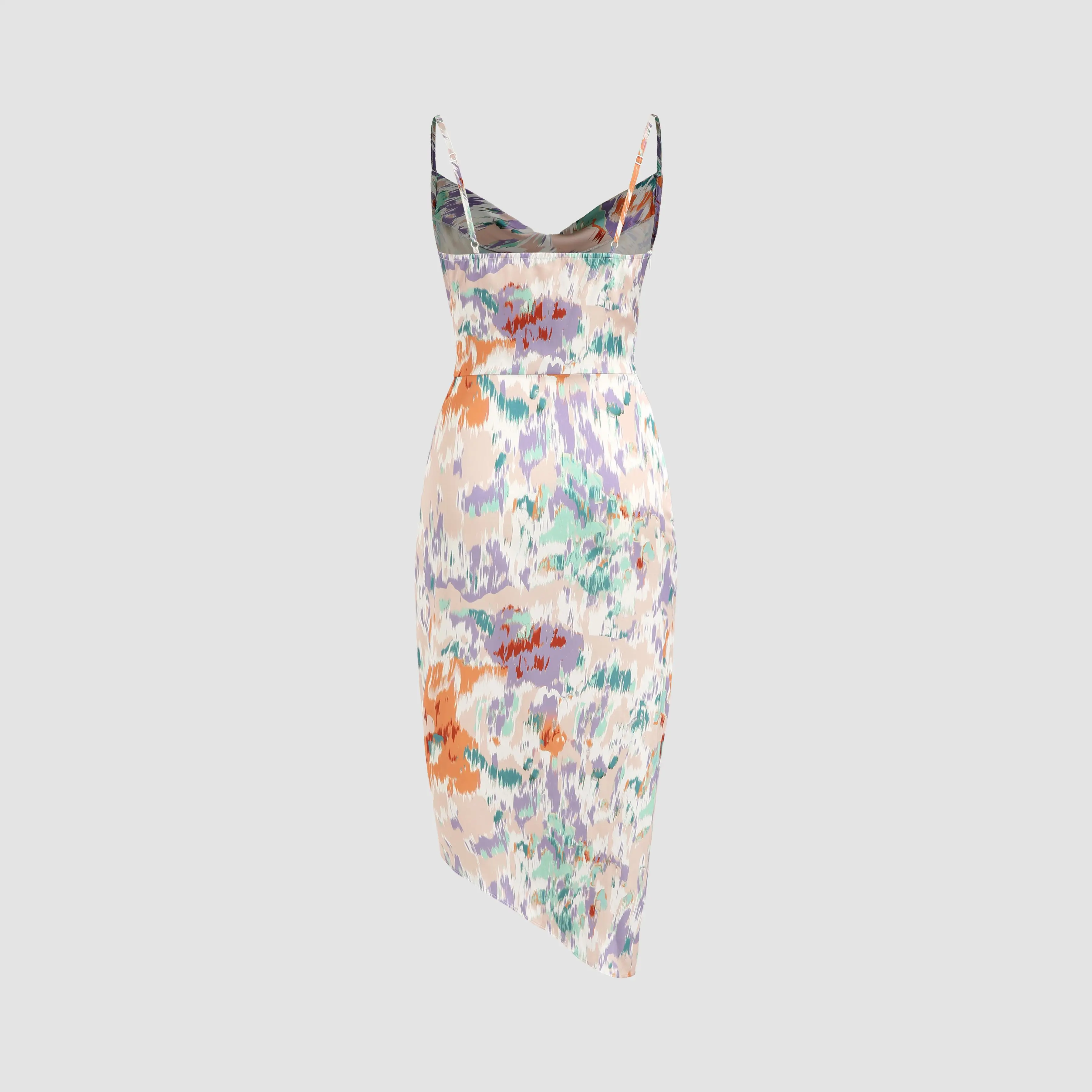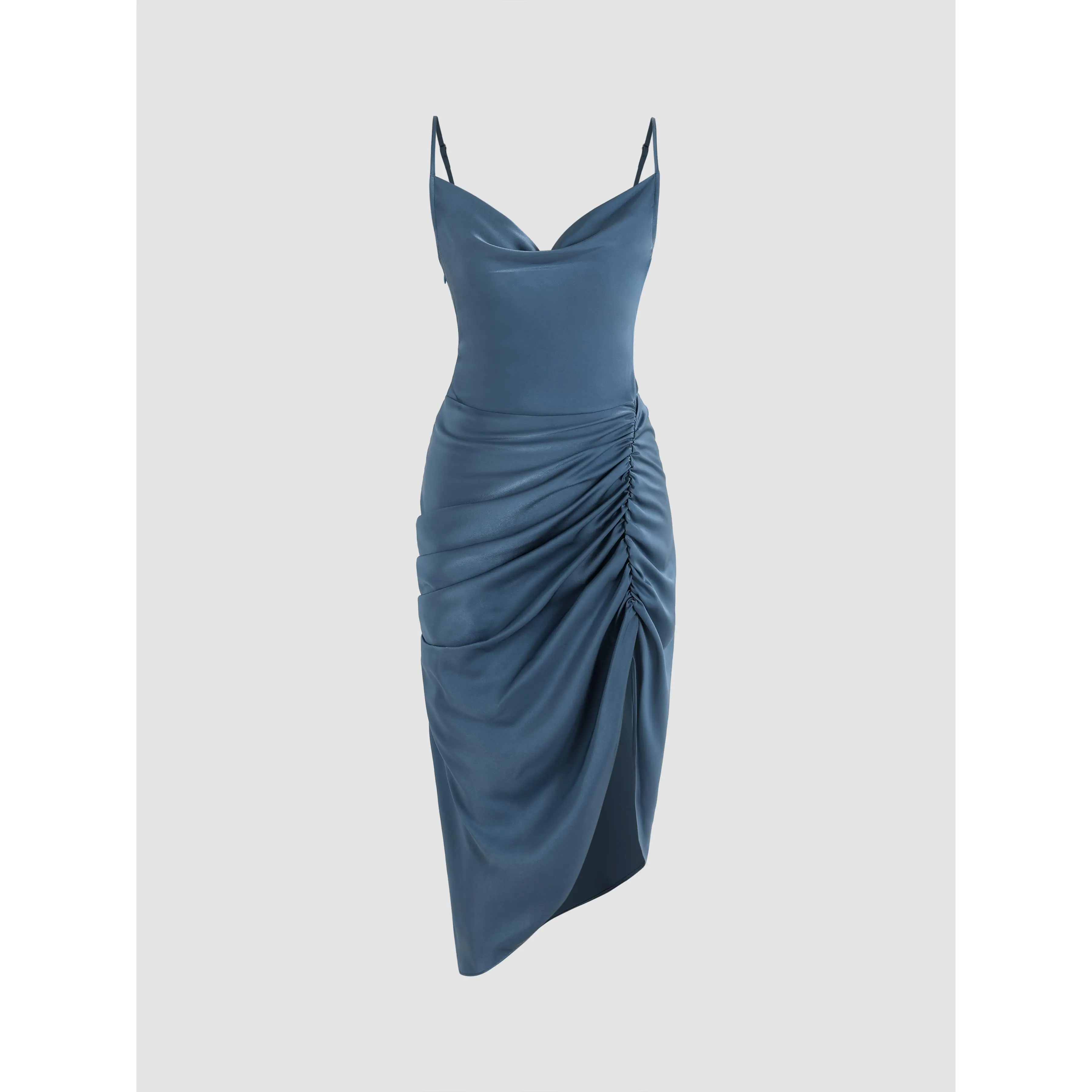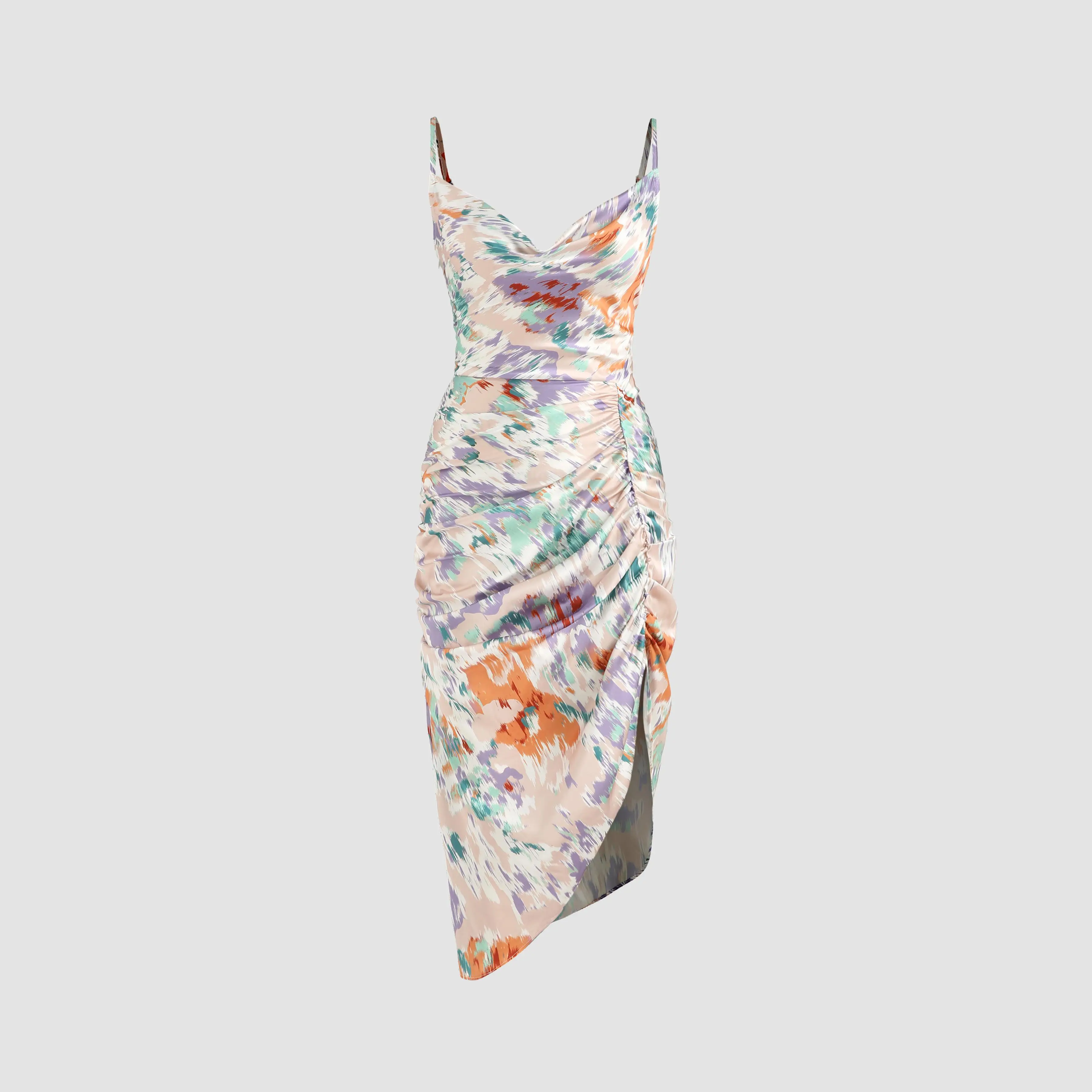 ·Cider Illusion Floral Ruched Cowl Neck Midi Dress