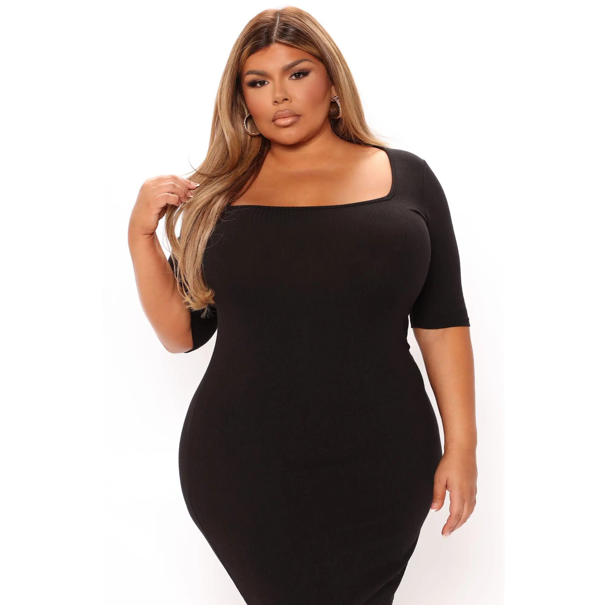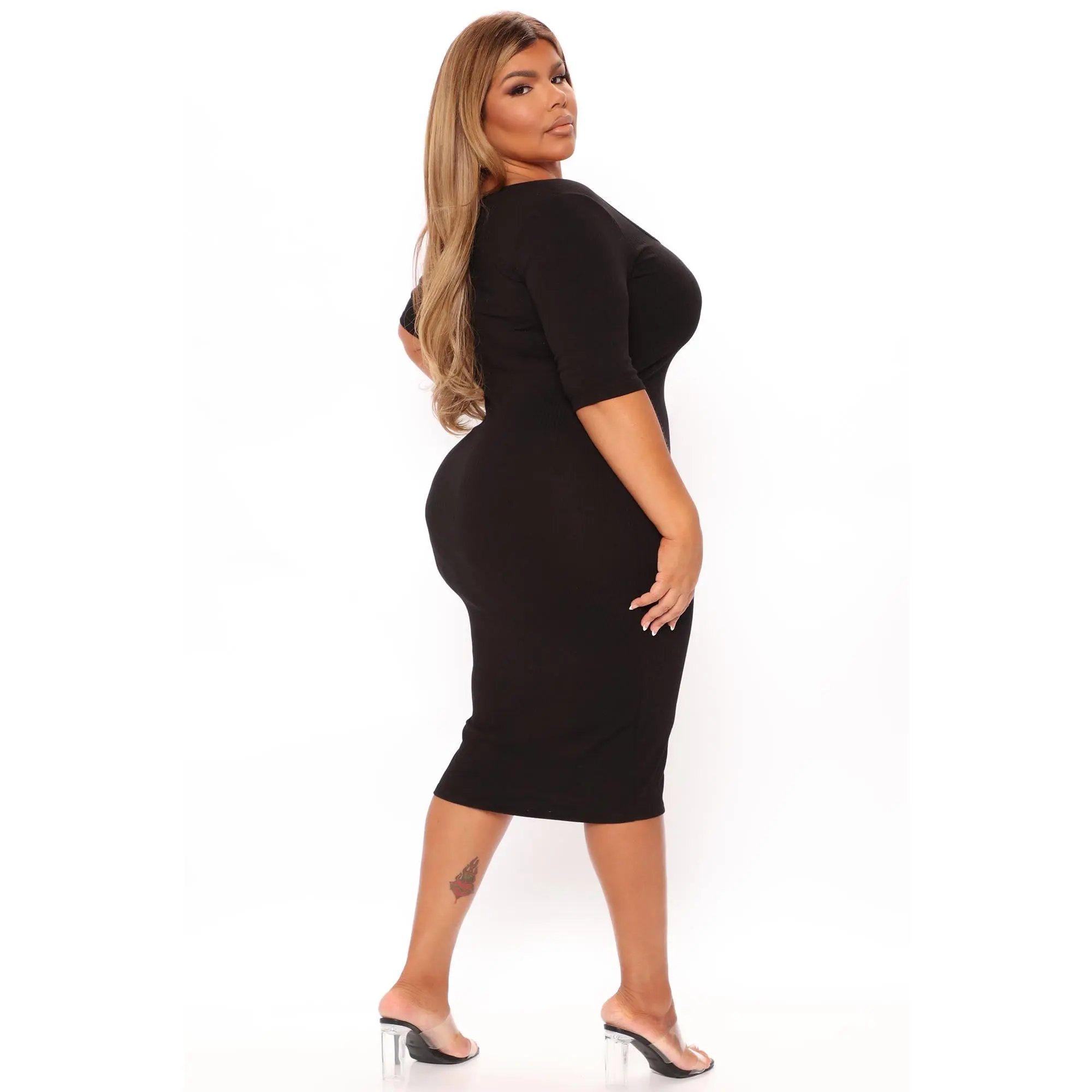 Love the material and how it hugs my body as a plus size girl I had been looking for a black dress below the knee and this dress prefect for the office …