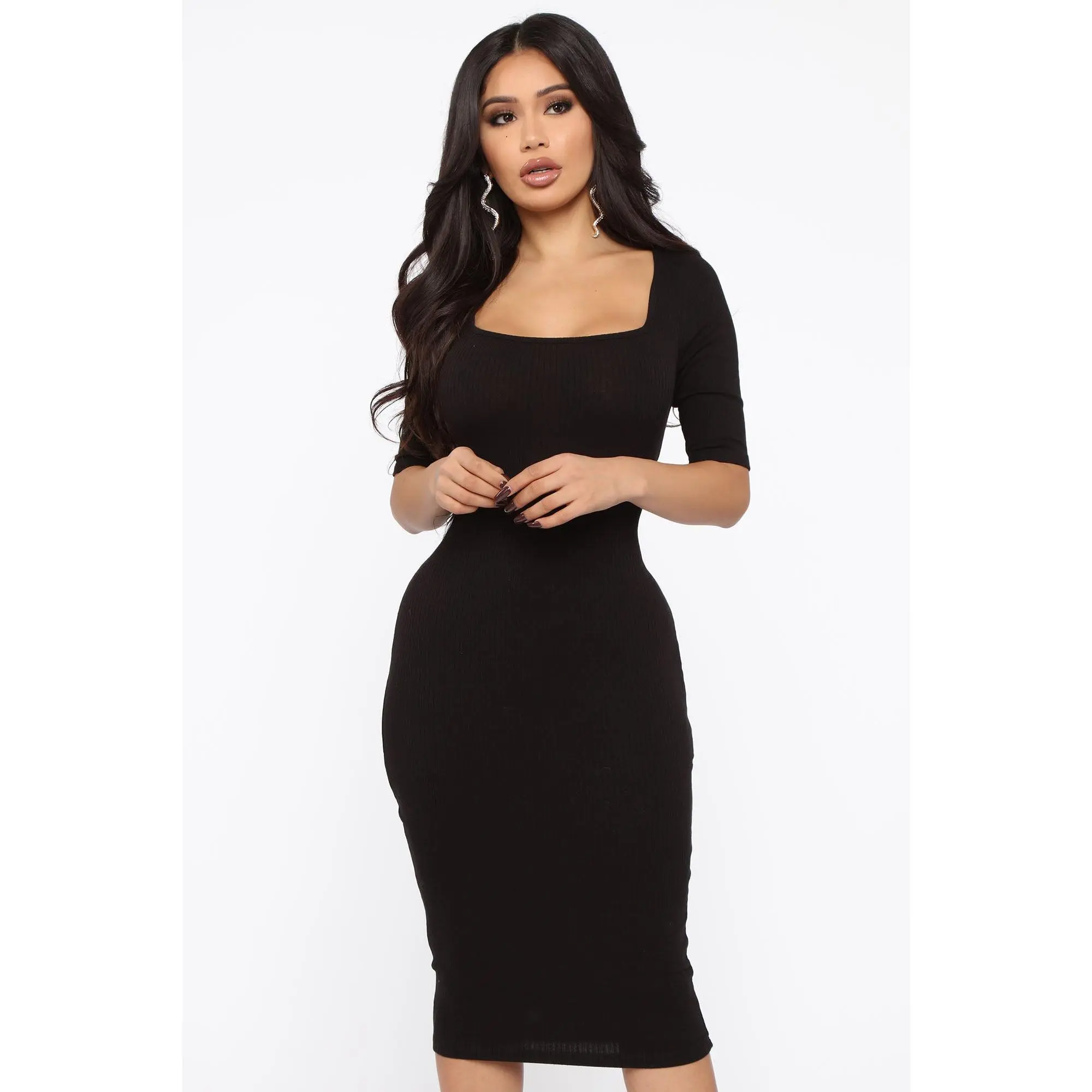 Looks like a ribbed t-shirt dress, very casual and runs about 2 sizes too small.. I've ordered from fashion nova before and this is really off