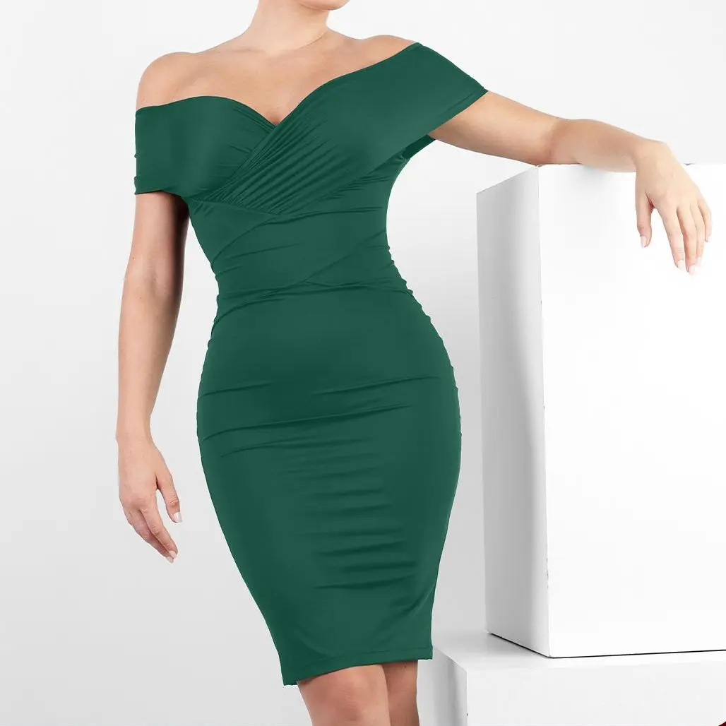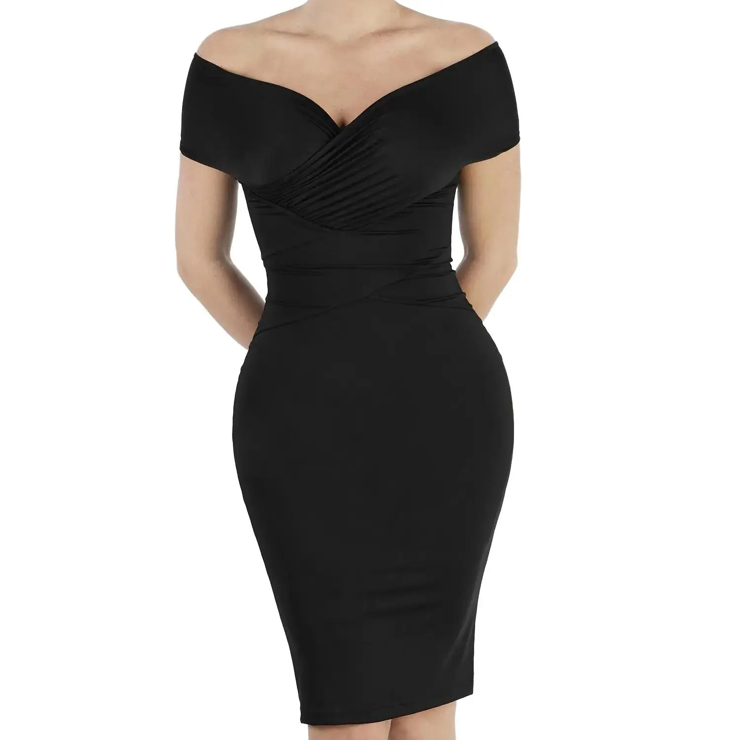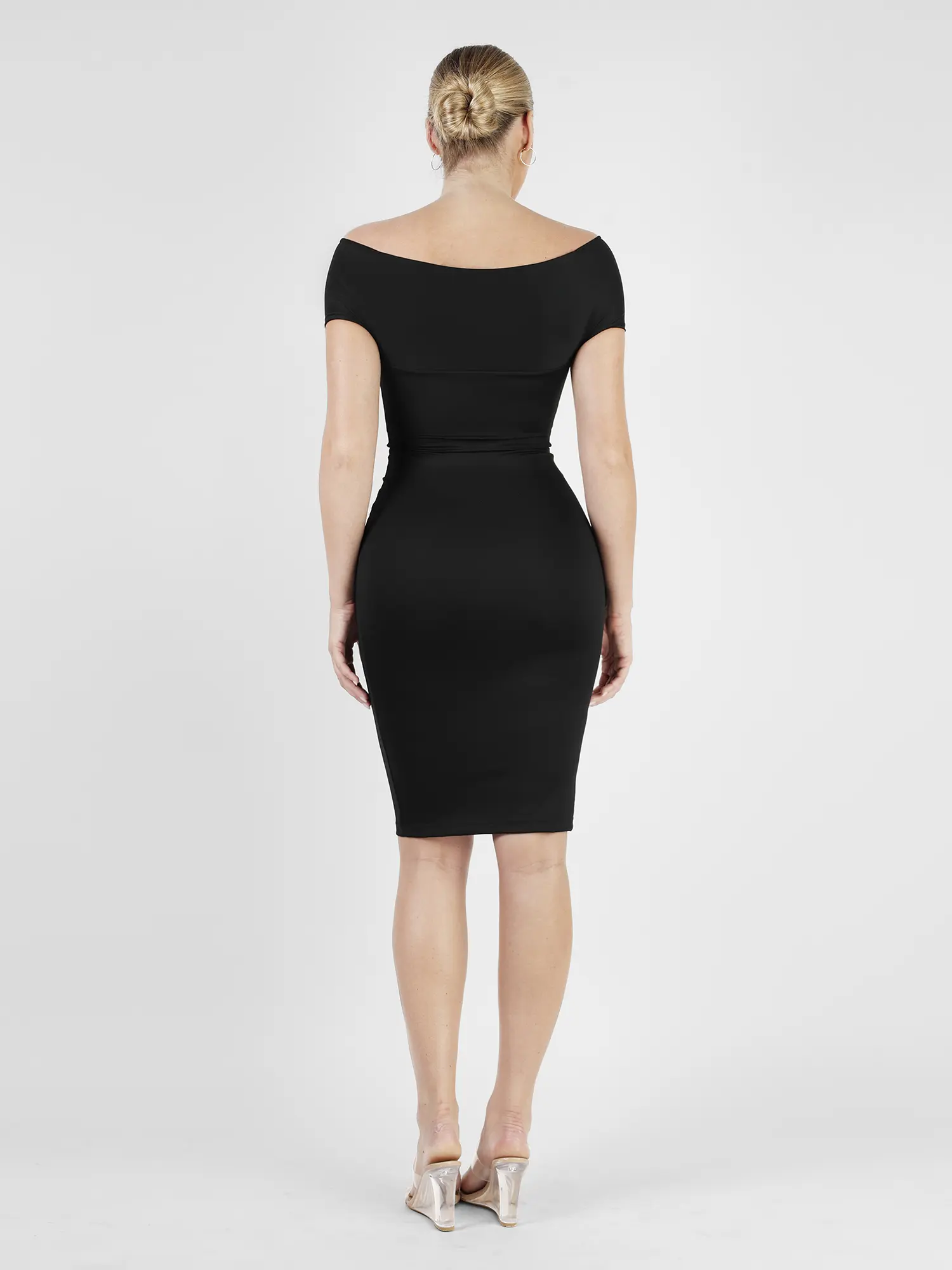 Make a statement with the Popilush Off-Shoulder Ruched Shapewear Midi Dress. The off-shoulder silhouette is ideal for events like bridal showers or graduations. Pair it with heels and a clutch for an unforgettable, show-stopping look.