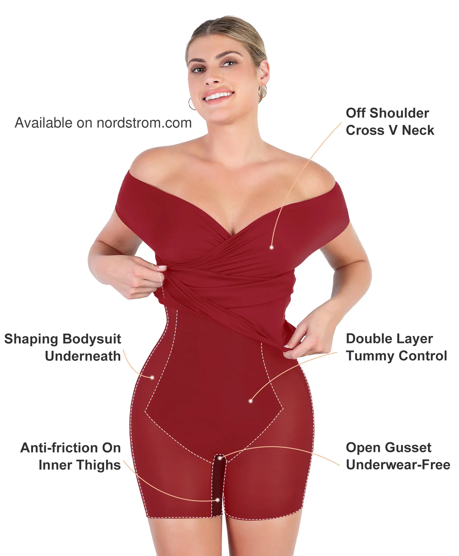 ·Flattering Off-Shoulder Design: The off-shoulder cut beautifully elongates the neckline, highlighting your shoulders and collarbone. Its overlapping chest design creates the illusion of a fuller bust and slimmer waist for a naturally elegant look.