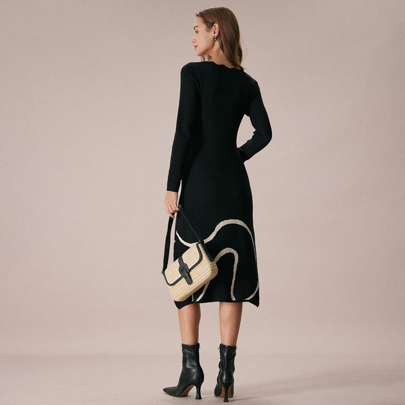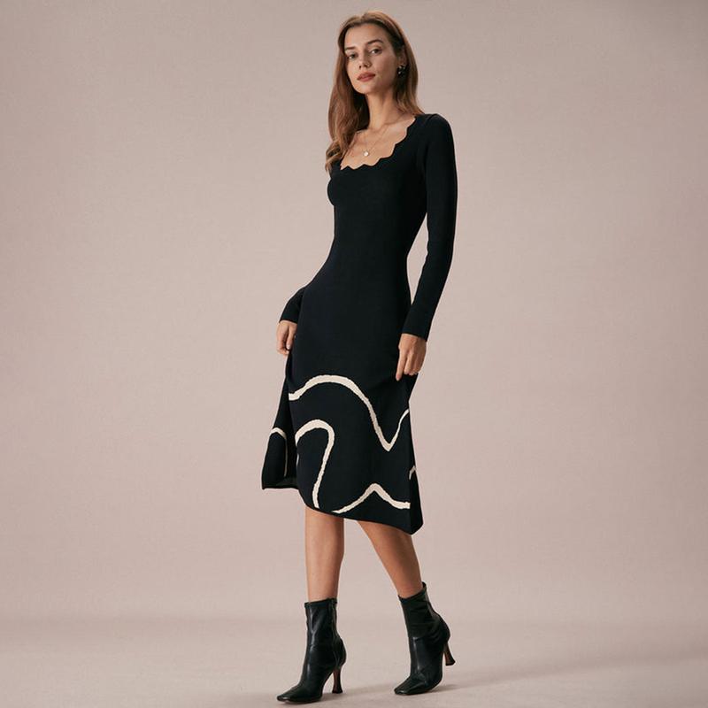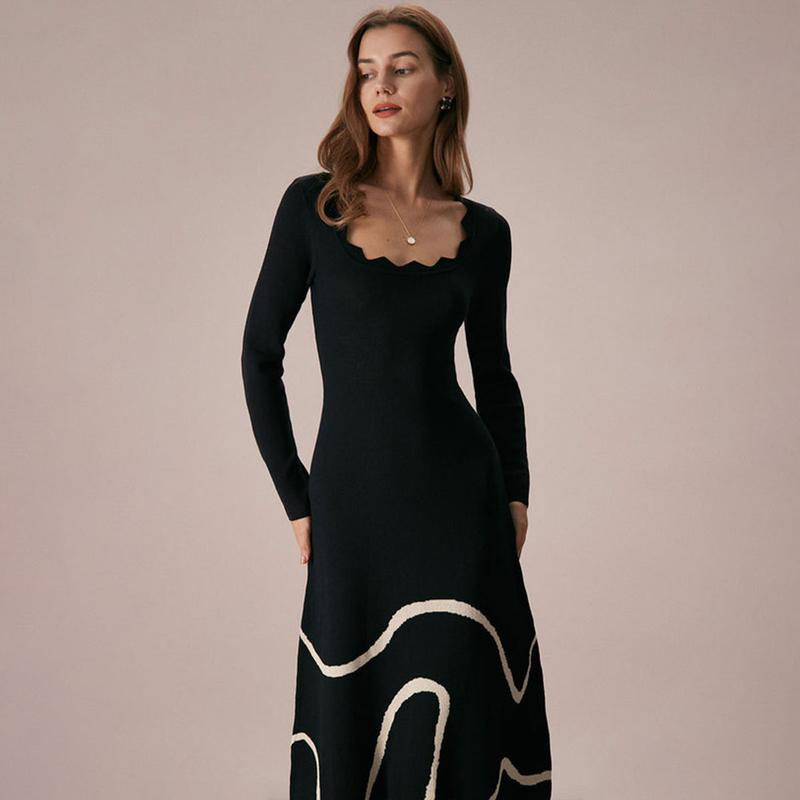 5. RIHOAS The Black Wave Scalloped Sweater Midi Dress Long Sleeve Womenswear