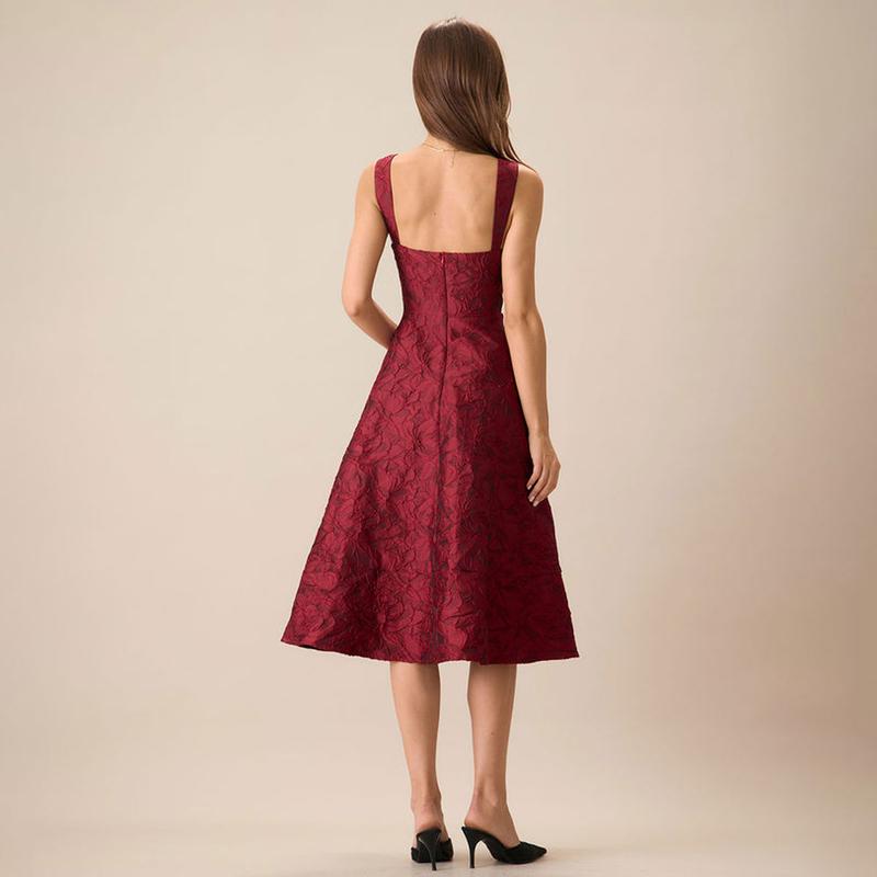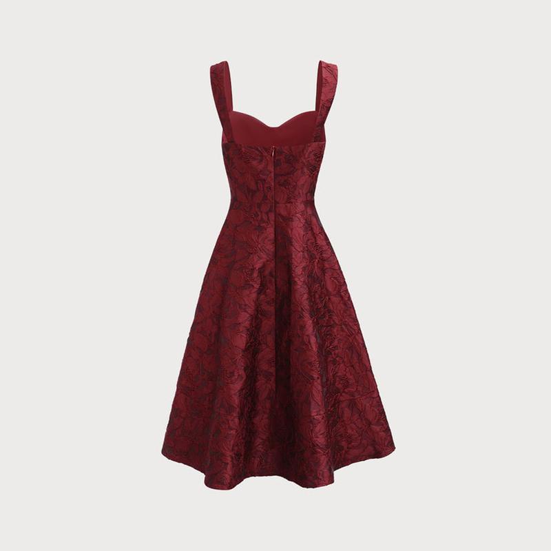 RIHOAS The Red Sweetheart Neck Jacquard Floral  Dress, Elegant Collar Sleeveless Dress, Women's Clothing Midi Dress Womenswear Casual
