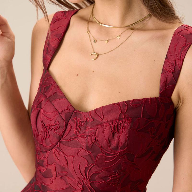 RIHOAS The Red Sweetheart Neck Jacquard Floral Dress, Elegant Collar Sleeveless Dress, #RIHOASStyle #JacquardDress #FloralMidiDress #RedDressMagic #ElegantStyle #ChicLook #FeminineFashion #SweetheartNeckline #TimelessStyle #DateNightOutfit #fyp #foryoupage #trending #tiktok #tiktokshop #sale