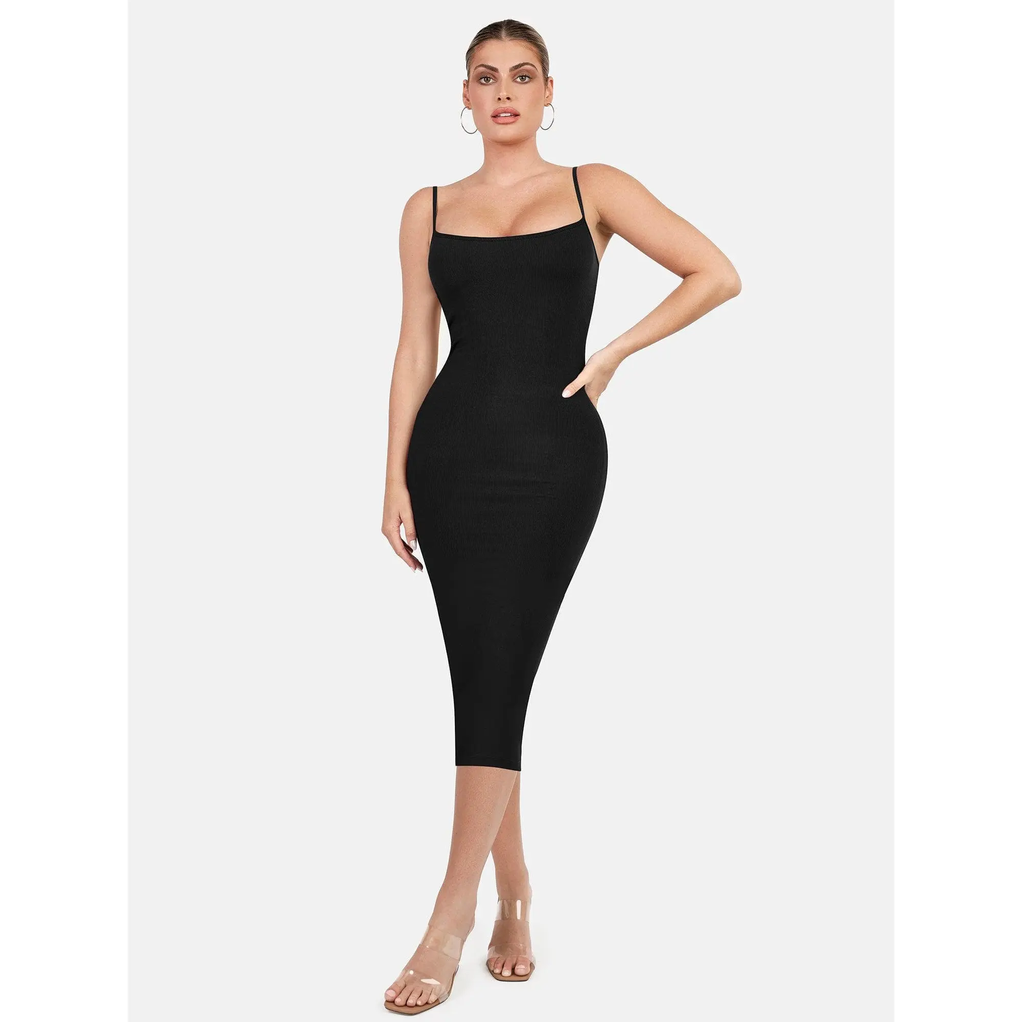 The slimming body suit underneath the dress does its work without making you feel like you wanna die