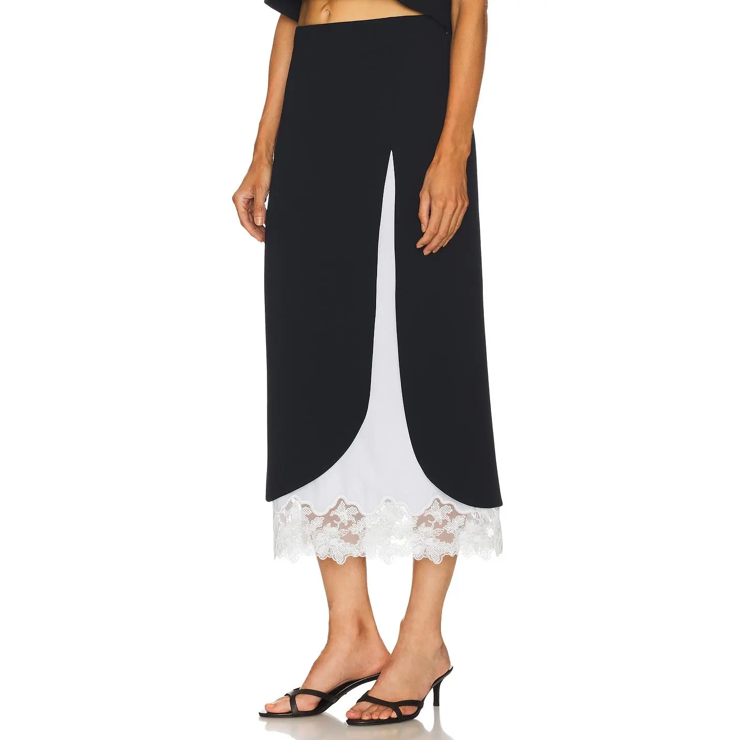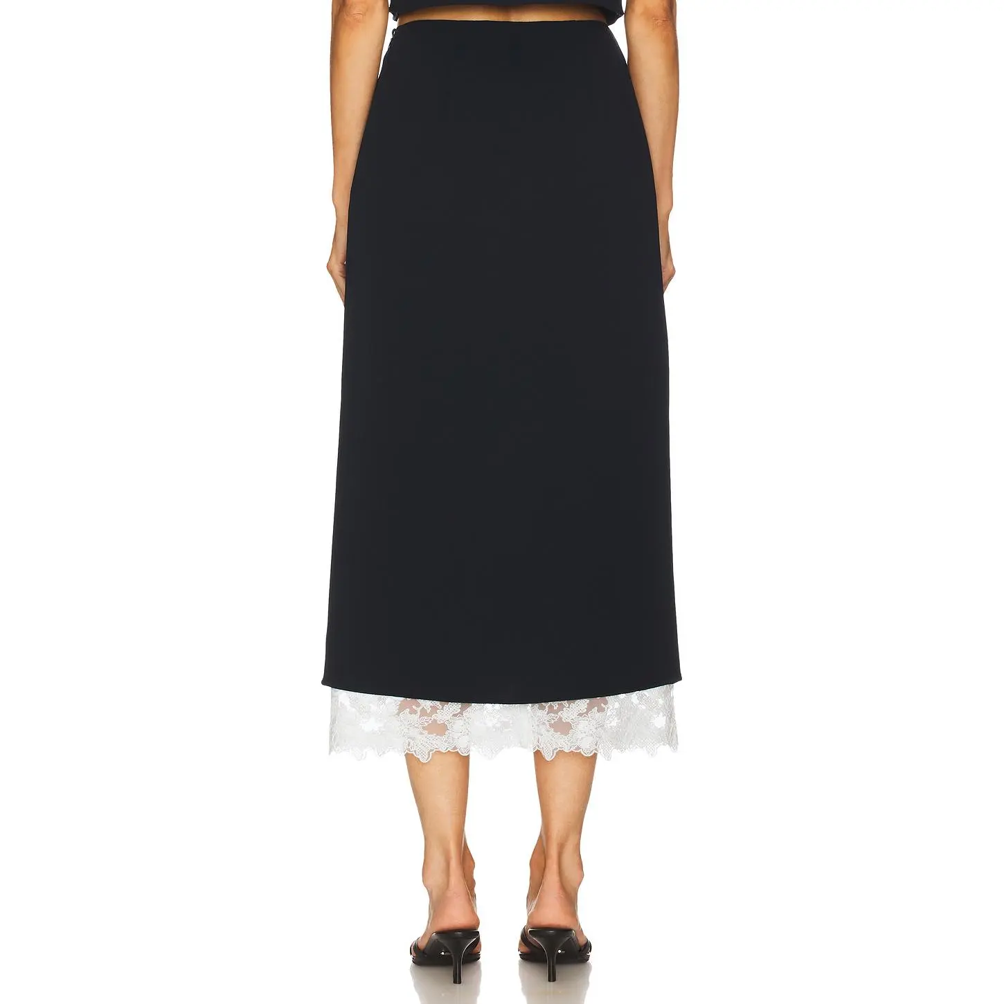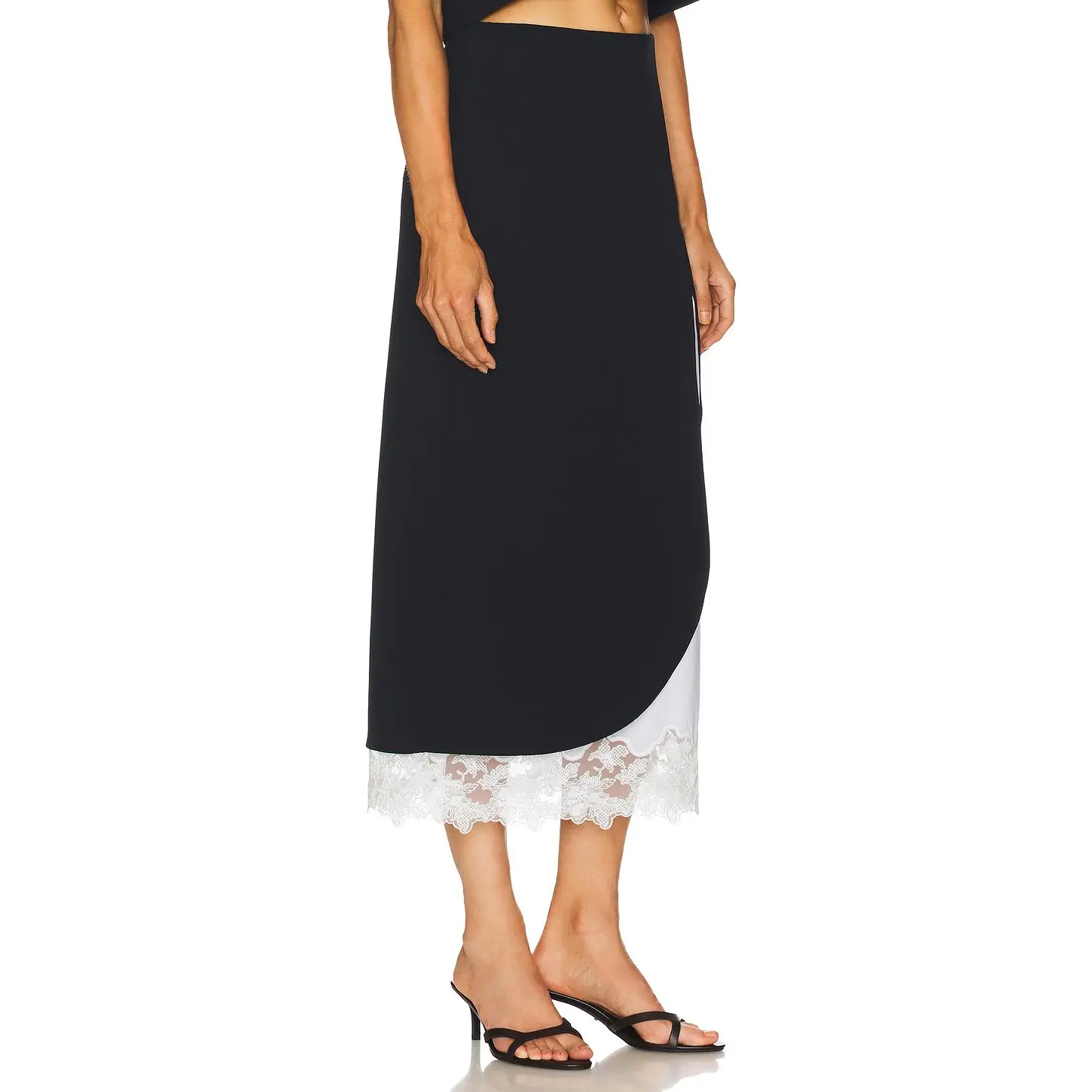 Helsa The Midi Pencil Skirt With Lace & Poplin in Black