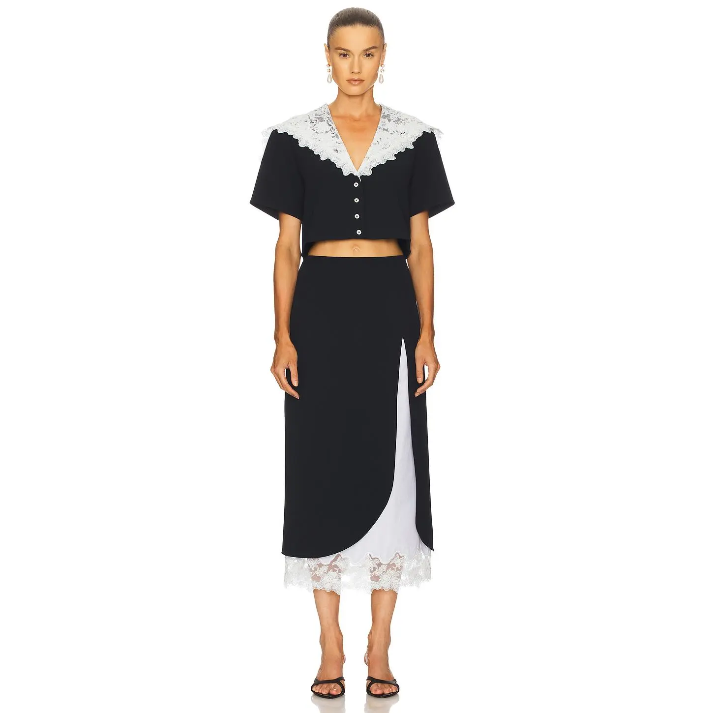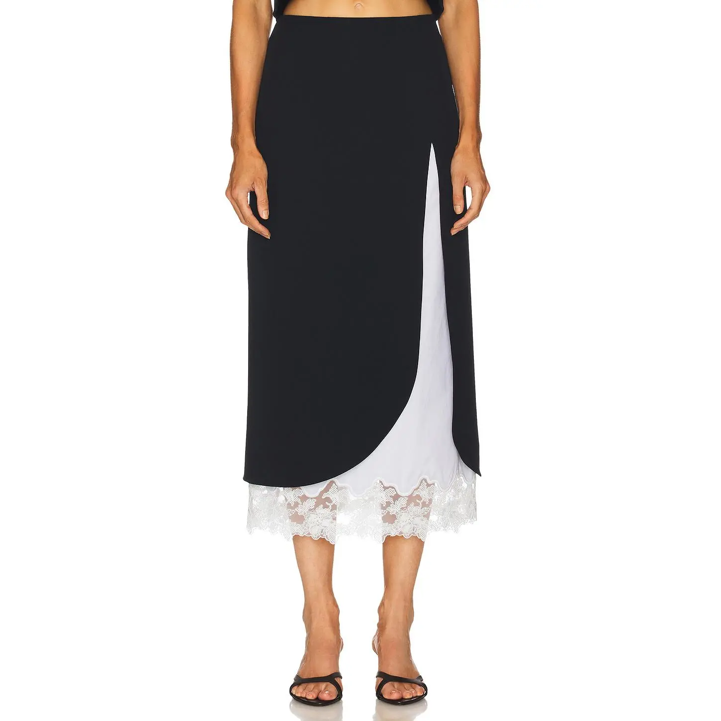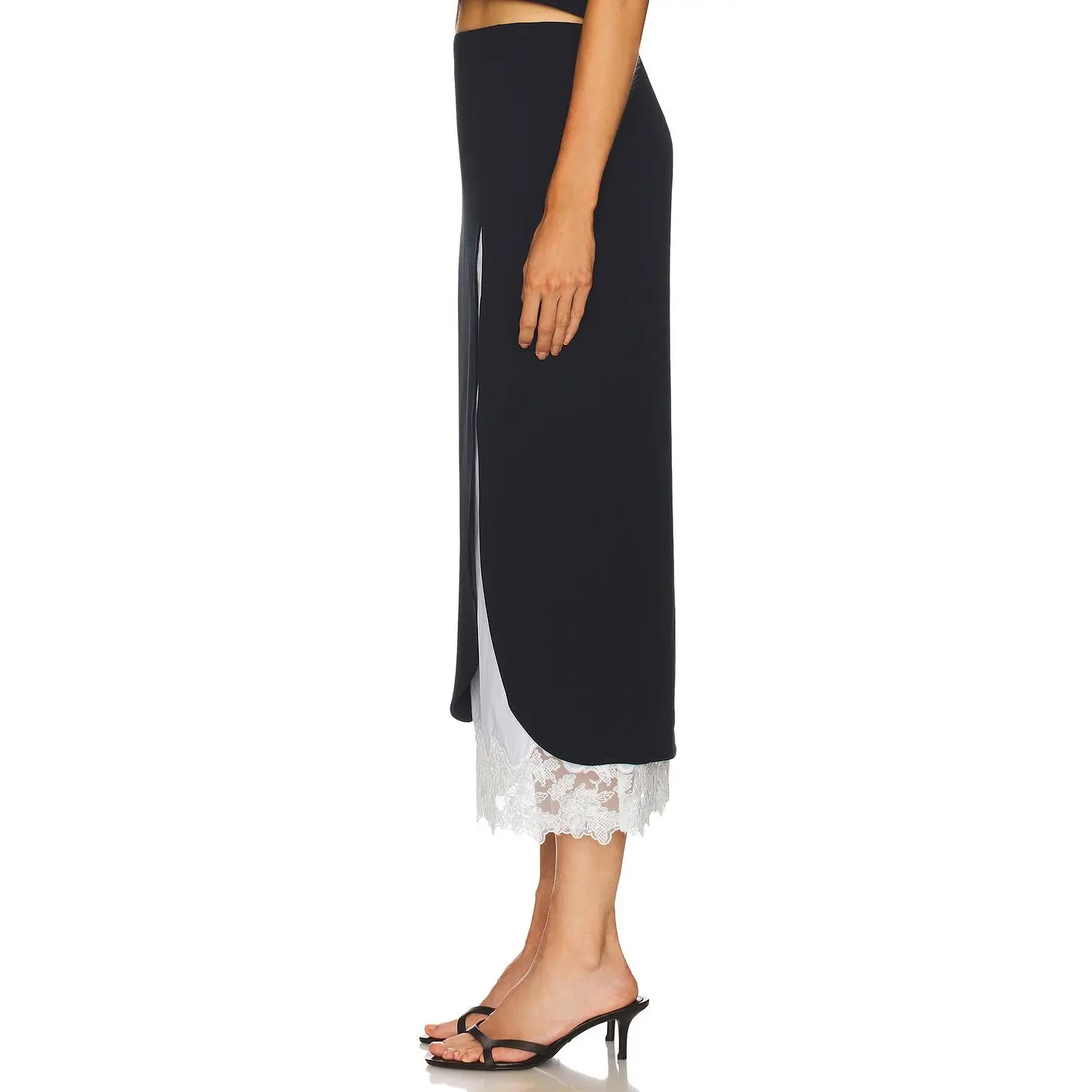 Helsa The Midi Pencil Skirt With Lace & Poplin in Black