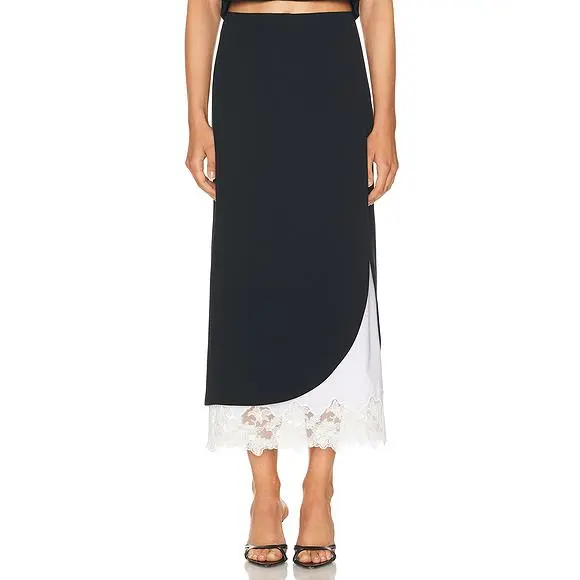 5. Helsa The Midi Pencil Skirt With Lace & Poplin in Black