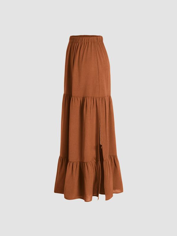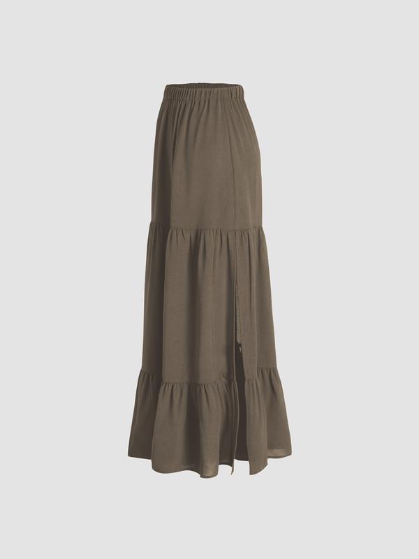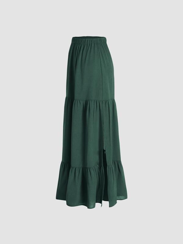 You need this skirt! It has a side slit that makes the skirt so cute! I wasn’t sure about the length but it was perfect for me. I’m 5foot and it was perfect to wear with heels or sneakers. I love the way it flows and looks on me.