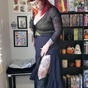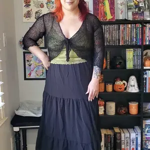 I looove this skirt! If you live in a warmer climate it's a great transitional piece for summer to fall. I love the split thigh too, it makes this popular style more unique imo. I typically wear a size 10-14 in pants and I got this in a size L 🖤🖤🖤