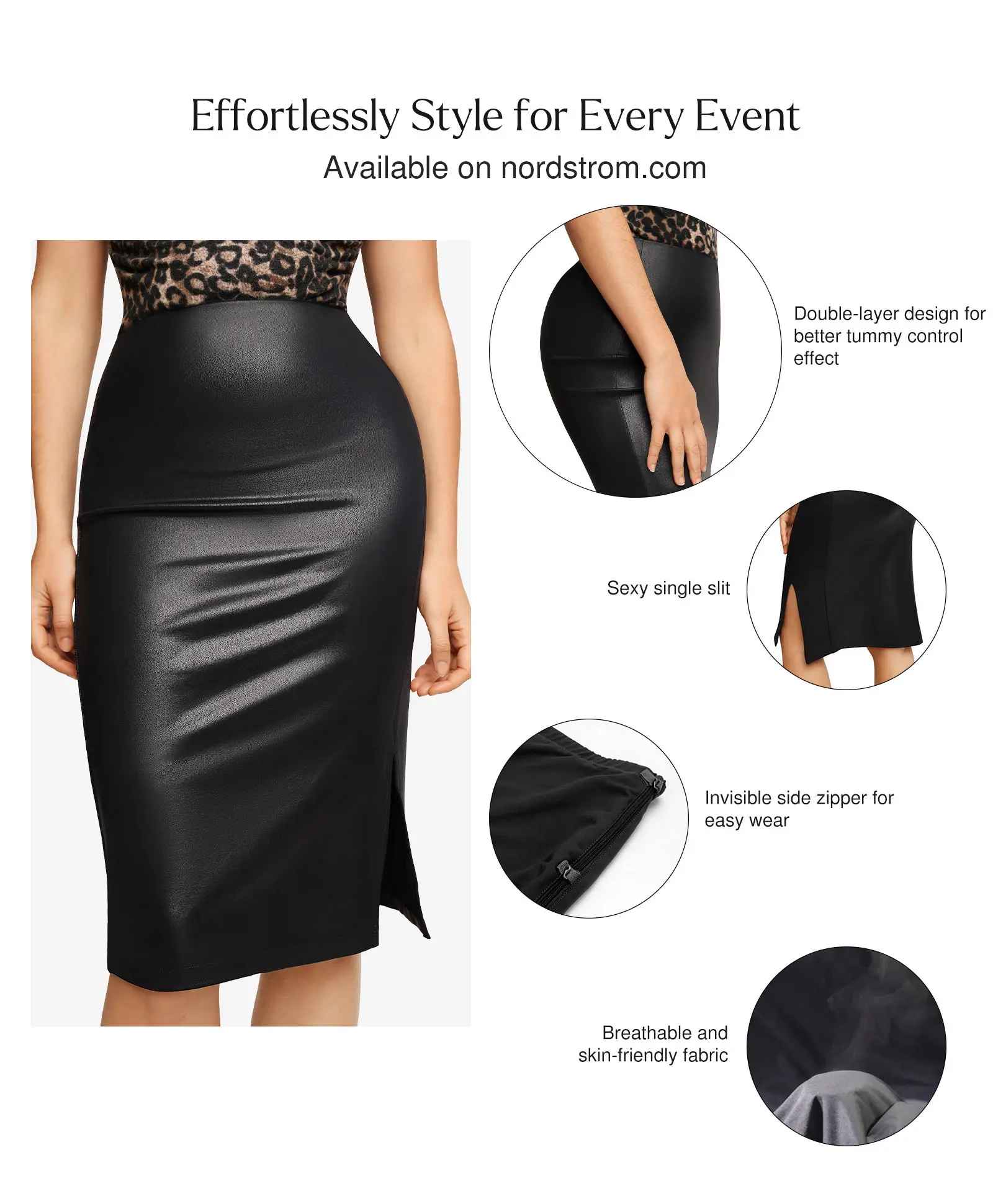 The Popilush Built-In Shapewear Faux Leather Midi Skirt is a stylish and versatile piece, perfect for commuting, lounging, or a night out.